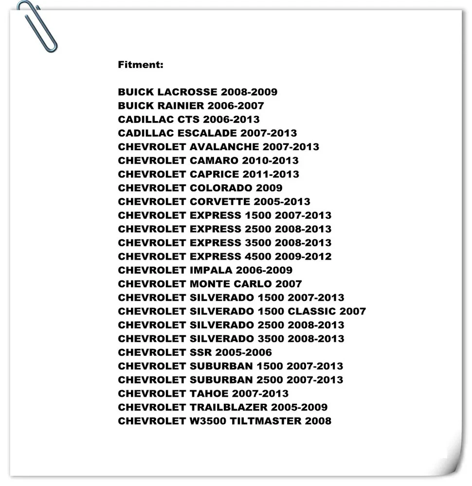 Description: Brand New Ignition Coil Connector: 4 Pins Connector Gender: Female Terminal Gender: Male Terminal Type: Blade Voltage: 12V Manufacturer Part Number: D510C UF413 12570616 BSC1511 12611424 OEM Part Number: UF413 C1511 1788411 12611424 12570616 B058HE BS-C1511 B058 8125706160 6737002 5C1554 521819 Coils Svfruit Best choice of motor parts Set of 8 For GM OEM Replace 12611424 Ignition Coils LS3 LT1 LSA D510C 12570616 Description: Brand New Ignition Coil Connector: 4 Pins Connector Gender: Female Terminal Gender: Male Terminal Type: Blade Voltage: 12V Manufacturer Part Number: D510C UF413 12570616 BSC1511 12611424 OEM Part Number: UF413 C1511 1788411 12611424 12570616 B058HE BS-C1511 B058 8125706160 6737002 5C1554 521819 Coils Part number: C1511SPEC 2-50227 EBC1789 26A1042 C-721 12570616 178-8411 GN10165 IC533 8265 82653 48713 U5132 12611424 D510C D513A 140043 140043-8 140043K 140043K-8 50227 36-1192 5115 2505-311071 E893 C1351 C1511 C1511-8 C1511DLGKIT 12570616 12611424 2-50069 8125706160 8126114240 5C1154 5C1554 IC533SB UF413T 673-7002 52-1712 52-1819 098622A210 IGC0150 GM1316053 SKIC048 CUF413 2IC422 50227 Feature: 1.Efficient ignition 2.Strong durability 3.High reliability 4.Good compatibility 5.Easy to install and maintain 6.Enhance driving experience Package include: Set of 8 Ignition Coil Pack Fitment For: 2008-2009 Buick Allure V8 5.3L 2008-2009 Buick LaCrosse V8 5.3L 2005-2007 Buick Rainier V8 5.3L 2009-2018 Cadillac CTS V8 6.2L 2006-2007 Cadillac CTS V8 6.0L 2007-2018 Cadillac Escalade 2007-2018 Cadillac Escalade ESV 2007-2013 Cadillac Escalade EXT 2007-2013 Chevrolet Avalanche 2010-2015 Chevrolet Camaro V8 6.2L 2011-2017 Chevrolet Caprice V8 6.0L 2009-2012 Chevrolet Colorado V8 5.3L 2005-2013 Chevrolet Corvette 2008-2014 Chevrolet Express 1500 Van V8 5.3L 2008-2014 Chevrolet Express 2500 Van V8 4.8L 2008-2014 Chevrolet Express 2500 Van V8 6.0L 2008-2014 Chevrolet Express 2500 Van V8 5.3L 2015-2018 Chevrolet Express 3500 Van V8 6.0L Flex Fuel 2008-2017 Chevrolet Express 3500 Van V8 4.8L 2008-2014 Chevrolet Express 3500 Van V8 6.0L 2006-2009 Chevrolet Impala V8 5.3L 2006-2007 Chevrolet Monte Carlo V8 5.3L 2007 Chevrolet Silverado 1500 with New Body Style V8 6.0L 2007 Chevrolet Silverado 1500 with New Body Style V8 5.3L 2007 Chevrolet Silverado 1500 with New Body Style V8 4.8L 2008-2013 Chevrolet Silverado 1500 V8 6.2L 2008-2013 Chevrolet Silverado 1500 V8 6.0L 2008-2013 Chevrolet Silverado 1500 V8 5.3L 2008-2013 Chevrolet Silverado 1500 V8 4.8L 2008-2016 Chevrolet Silverado 2500 HD V8 6.0L 2007 Chevrolet Silverado 2500 HD with New Body Style V8 6.0L 2008-2016 Chevrolet Silverado 3500 HD V8 6.0L 2007 Chevrolet Silverado 3500 HD with New Body Style 2014-2017 Chevrolet SS 2005-2006 Chevrolet SSR V8 6.0L 2005 Chevrolet SSR V8 5.3L 2007-2014 Chevrolet Suburban 1500 2007-2013 Chevrolet Suburban 2500 2007-2015 Chevrolet Tahoe 2006-2009 Chevrolet Trailblazer V8 6.0L 2006-2008 Chevrolet Trailblazer V8 5.3L 2005-2006 Chevrolet Trailblazer EXT V8 5.3L 2009-2012 GMC Canyon V8 5.3L 2005-2009 GMC Envoy V8 5.3L 2005-2006 GMC Envoy XL V8 5.3L 2005 GMC Envoy XUV V8 5.3L 2008-2013 GMC Savana 1500 Van V8 5.3L 2008-2015 GMC Savana 2500 Van V8 4.8L 2008-2015 GMC Savana 2500 Van V8 6.0L 2008-2015 GMC Savana 2500 Van V8 5.3L 2008-2017 GMC Savana 3500 Van V8 4.8L 2008-2018 GMC Savana 3500 Van V8 6.0L 2007 GMC Sierra 1500 with New Body Style V8 5.3L 2008-2015 GMC Sierra 1500 V8 6.2L 2007 GMC Sierra 1500 with New Body Style V8 4.8L 2008-2013 GMC Sierra 1500 V8 6.0L 2008-2015 GMC Sierra 1500 V8 5.3L 2008-2014 GMC Sierra 1500 V8 4.8L 2007 GMC Sierra 1500 with New Body Style V8 6.2L 2007 GMC Sierra 1500 with New Body Style V8 6.0L 2007 GMC Sierra 2500 HD with New Body Style 2008-2016 GMC Sierra 2500 HD 2008-2015 GMC Sierra 3500 HD 2007 GMC Sierra 3500 HD with New Body Style 2007-2013 GMC Yukon 2007-2013 GMC Yukon XL 1500 2007-2013 GMC Yukon XL 2500 2008-2009 Hummer H2 V8 6.2L 2008-2010 Hummer H3 V8 5.3L 2009 Hummer H3T V8 5.3L 2005-2006 Isuzu Ascender V8 5.3L 2008-2009 Pontiac G8 V8 6.0L 2005-2008 Pontiac Grand Prix V8 5.3L 2005-2006 Pontiac GTO 2005-2009 Saab 9-7X V8 6.0L 2005-2009 Saab 9-7X V8 5.3L What's the Symptoms of Bad Ignition Coils? A faulty coil could cause major performance and structural issues for your vehicle, so if are experiencing any of the below symptoms, that means you need to check your coils emmidiately 1. Vehicle Hard to Start 2. Check Engine Light On 3. Misfire Engine 4. Poor Gas Mileage Control 5. Diminishing Power Output 6. Oil Leaking NOTE: 1. Professional installation is recommended. 2. Compare the detail sizes with yours, please allow 1-3cm error, due to manual measurement. 3. Please leave a message before you give the bad feedback, if the products have some problems. 4. Thanks for your understanding and have a nice day! Item Specifics Brand MGT Type Ignition Coil Placement on Vehicle Front, Lower Installation Type Bolt-On Connector Gender Male-to-Female Exterior Painted Position Front Inside Lift Type plug-in Voltage 12V Connector 4 pins Color Black Fitment Type Direct Replacement Mileage More Than 100,000 miles Features Efficient ignition.Strong durability.High reliability Features 2 Easy to install and maintain.Enhance driving experience Features 3 Good compatibility.Brand New Interchange Part Number 12611424, 5C1554, 521819 ,UF413, D510C, C1511, D513A Other Part Number 8125706160, UF-413, BSC1511, 12558948, D510C UF413 Superseded Part Number UF413, E893, 52-1819, IC533 Manufacturer Part Number D510C UF413 12570616 BSC1511 12611424 Item including Set of 8 Ignition Coil Pack Manufacturer Warranty 2 Years Payment 1. It will be much appreciated that you finish your payment asap or it will make UPI (unpaid item case) on your account leading to be suspended or restricted by eBay when those UPI cases carry over to certain amount. 2. Any problems please contact us for more details. Shipping 1. All items will be shipped to buyer's ebay address. 2. All items will be shipped wit