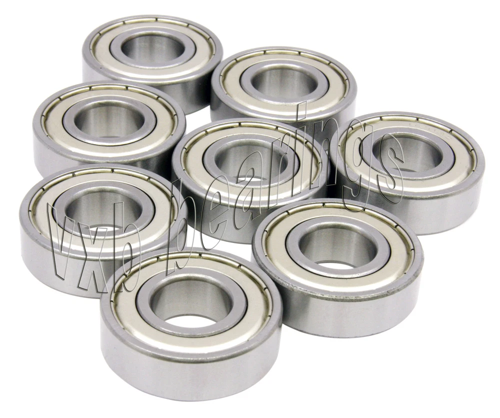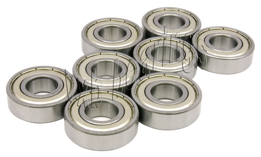 8 Skateboard Bearings 608ZZ Ball Bearings Click on Picture to view Skateboard Ball Bearings 608 ZZ Dimensions: ID=8mm OD=22mm B=7mm Quantity 8 pieces 8 Bearings Packed in a retail box (box is not available).. see picture You are buying a set of 8 Bearings 608ZZ made of Carbon Steel and can rotate up to 34,000 rpm, each bearing has 2 metal shields to protect the bearing from dust or any possible contamination, these are self lubricated bearings (bearings are already greased). Item: 608 ZZ Type: Carbon Steel Deep groove ball bearings Closures: Metal Shielded Quantity: 8 Bearings 608Z Bearing Size: 8x22x7 mm 608ZZ Applications: Skateboards, Roller Blade, Inline Skating, scooter and Rollerblade Other wrong Spellings for bearings: bering, beiring, biering, baering, bairing, berings, beirings, bierings, baerings and bairings Pack#sk8zz