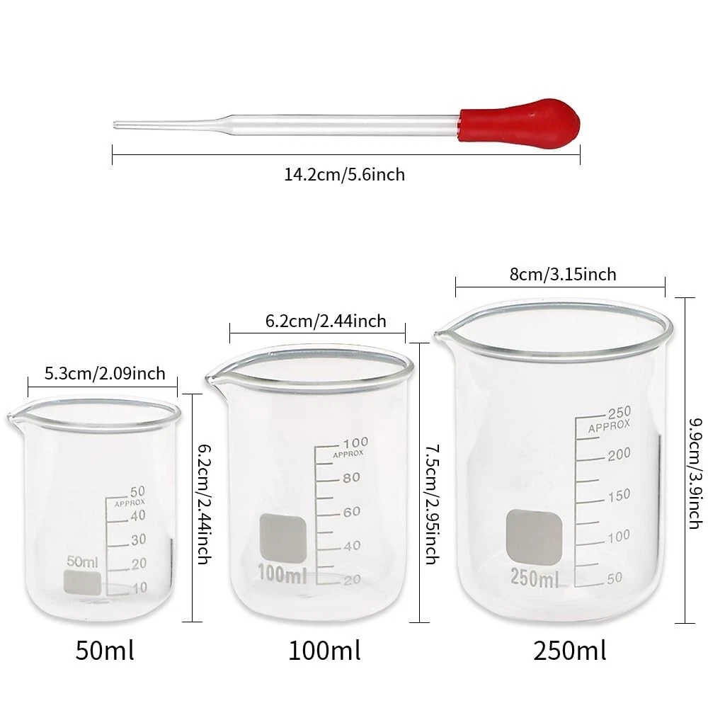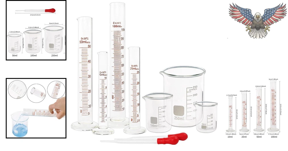 Set of Borosilicate Glass Graduated Cylinders and Beakers with Glass Droppers ‹ › ‹ › ‹ › ‹ › ‹ › ‹ › ‹ › ‹ › ‹ › Set of Borosilicate Glass Graduated Cylinders and Beakers with Glass Droppers Overview: This exquisite set includes premium-quality graduated cylinders and beakers, making it an essential addition to any laboratory or home experimenter’s toolkit. Package Includes: Glass Graduated Cylinders: 4 sizes (10ml, 25ml, 50ml, 100ml) Glass Beakers: 3 sizes (50ml, 100ml, 250ml) 2 Glass Droppers for precise dispensing Product Features: Constructed from laboratory-grade 3.3 borosilicate glass (GG-17) for superior strength and thermal stability. Thick glass design is acid and alkali resistant, ensuring longevity and reliability for all your experiments. Tapered gates on both the graduated cylinder and beaker allow for effortless liquid pouring. Each graduated cylinder features a stable base and easy-to-read clear scales for accurate measurements. Easy to clean, making it perfect for repeated use in various settings. Why Choose This Set? Transform your scientific endeavors with our elegantly designed set of graduated cylinders and beakers. Beyond functionality, each piece exudes sophistication, suitable for professional laboratories as well as home enthusiasts. This set is not just a tool, but a gateway to exploration and discovery. Protected in thick EPE and carton packaging, your glassware will arrive safely at your doorstep, ready for experimentation. Offering versatile sizes, it’s the perfect gift for budding chemists, ideal for school projects, home labs, Halloween-themed parties, or science-inspired birthday celebrations. Elevate your scientific journey - invest in accuracy and elegance with our Borosilicate Glass Graduated Cylinders and Beakers today! Shipping Free & Fast Shipping - We offer free shipping to most of the USA with a normal delivery time of 3-7 days. However, due to the current situation, additional delivery time (up to 3 weeks) may be required for some items. Alternative Carriers - We may use alternative carriers (e.g. USPS, FedEx, UPS, etc.) to ensure your package arrives safely and on time. Due to the use of multiple carriers, we are unable to provide a tracking number automatically. Handling Time - Orders are processed and shipped within 1-2 business days of receiving cleared payment. Shipping Restrictions - Shipping to Alaska, Hawaii, Puerto Rico, Guam, and other US territories may incur shipping charges or delivery restrictions. Please contact us before ordering, or your order can be refunded/cancelled. State Restrictions - There may be restrictions based on your state of purchase. For example, certain items may not be shipped to California due to state regulations. Contact for Tracking Updates - If you require tracking updates or have any concerns about the delivery of your order, please feel free to contact us, and we will be happy to assist you. Return 30-Day Hassle-Free Returns - We want you to be completely satisfied with your purchase. If you are not, you can return the item within 30 days of receiving it for a full refund or exchange. Easy Return Process - To start a return, simply contact us and we will provide you with a prepaid return shipping label and detailed instructions. Restocking Fee - There are no restocking fees for returns. However, the buyer is responsible for return shipping costs if the return is not due to a seller's error. Refund Processing Time - Refunds will be processed within 5 business days of receiving the returned item in its original condition. Payment We accept all major credit cards, PayPal, and Apple Pay for your convenience. Your payment information is secure and encrypted to ensure a safe and seamless transaction. Please complete your payment within 3 days of purchase to avoid any delays in shipping. Feedback Your feedback is extremely important to us. We strive to provide the best products and customer service possible. If you are satisfied with your purchase, please take a moment to leave us a positive review. If you have any concerns or issues with your order, please contact us before leaving negative feedback. We are committed to resolving any problems and ensuring your satisfaction. Contact Us If you have any questions or concerns, please feel free to reach out to our customer support team. You can contact us through the eBay messaging system. We are available Monday to Friday, 9:00 am to 5:00 pm EST, and we will do our best to respond to your inquiry within 24 hours. Buy it now and enjoy a pleasant shopping experience! UPC: Not Set Model: Glass Graduated Cylinder and Beaker Set MPN: Glass_Graduated_Cylinder_and_Beaker_Set Volume: 10/25/50/100ml Unit Quantity: 1 Intended Use/Discipline: Biological Laboratory,General Surgery,Medical Laboratory,Oncology,Chemistry,Education Brand: Unbranded Material: Borosilicate Glass Country/Region of Manufacture: Not Set Unit Type: oz