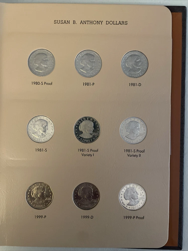 This is a rare set of 18 Susan B Anthony Dollars in a Dansco Album from 1979-1999. The album contains a 1979 and 1981 Type 2 dollars, all of which were manufactured in the United States. These coins are a great addition to any collection, especially for those interested in American currency history. The album is in excellent shape and is a must-have for any serious collector. Don't miss out on the opportunity to own this piece of history.