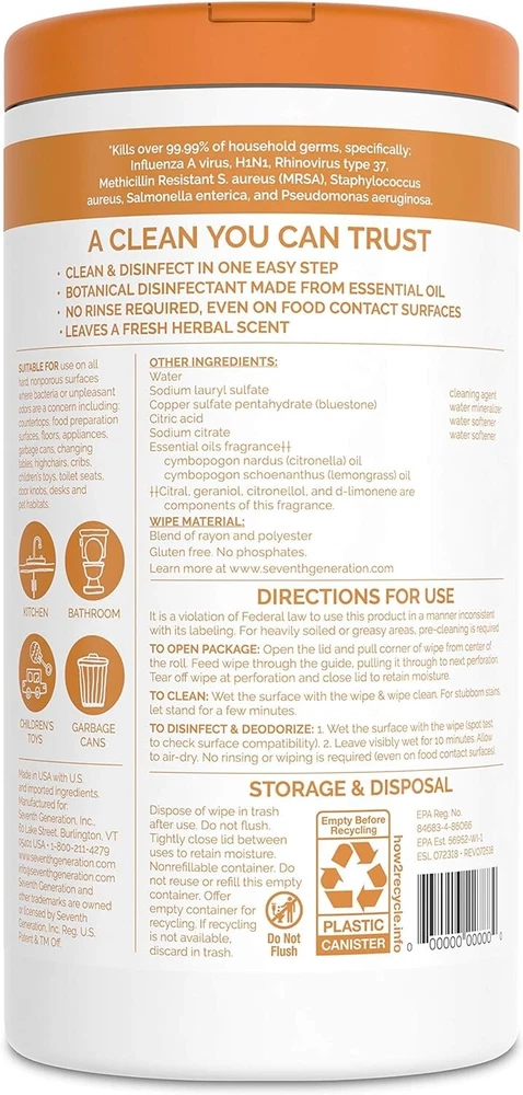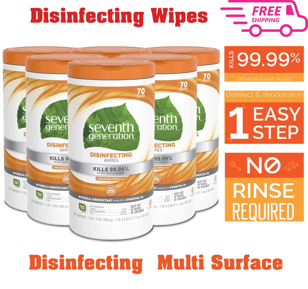 Seventh Generation Multi Surface Wipes, Fresh Botanical Scent, 70 Ct, Pack of 6 NOT DELIVERED TO MIAMI-DORAL-Warehouse- OUT OF STOCK ADDRESS. All order use Stock address and PO box address will be cancel. Please don't make order Specifications : Kills 99.99% of bacteria and viruses Botanical disinfectant with the active ingredient Thymol (a component of Thyme Oil) The germ-killing capability of thyme oil not only disinfects, it also infuses your home with the fresh botanical scent of the herb thyme Convenient wipes for daily touch-ups and tough cleaning jobs, clean and disinfect in one easy step No rinse required, even on food contact surfaces and children’s toys EPA Registered Disinfecting Wipes deodorize and effectively control odor Product Description : Clean doesn’t have to be complicated. Seventh Generation Disinfecting Wipes clean and disinfect in one easy step, killing 99.99% of household germs, including cold and flu viruses Our one-step disinfecting formula is designed for the hard, non-porous surfaces in every room in the house and does not require a rinse, even on food contact surfaces. The convenient wipes can be used for daily touch-ups or tough cleaning jobs. The germ-killing capability of thyme oil not only disinfects, it also infuses your home with the fresh botanical scent of the herb thyme. This EPA registered disinfectant can be used around kids and pets and is suitable for use on all hard non-porous surfaces including children’s toys, pacifiers, gym equipment, food contact surfaces, doorknobs, bathroom surfaces, and more. Seventh Generation is committed to being a brand of environmentally conscious and effective household and personal-care products. Our disinfectant wipes, sprays, and cleaners are solutions for the hard non-porous surfaces within your home. A partnership with the CleanWell Company, makers of the disinfectant formula based on an essential oil, brings you a line of Seventh Generation Disinfecting wipes with CleanWell Inside. Kills over 99.99% of household germs, specifically: Influenza A virus, H1N1, Rhinovirus type 37, Methicilin-resistant S. Aureus (MRSA), Staphylococcus aureus, Salmonella enterica, and Pseudomonas aeruginosa on hard, non-porous surfaces. Shipping & Handling: Processing Time: 3 – 5 business days. Standard US Shipping Time: 2 - 9 business days. Shipping Time WW: Average 7 - 10 business days, maximum 15 business days for some location. Term of Sale: We reserve the right to deny payment from unverified PayPal accounts or any suspicious or fraudulent activity. We reserve the right to end the auction earlier when there is problem with the item. We will make refund / reshipment if there's defect on our product or if we sent the wrong size/product code. Buyer should send picture(s) of the item(s) that have problem for our reference. Shipping charges are not refundable. Feedback: Positive feedback will be given once payment received. If you are satisfied with our product please kindly leave us a positive feedback and good ratings. If you have any issue / problem with our product, please contact us and give us a chance to solve your problem before leaving any neutral or negative feedback. Contact Us: Should you have any question please do not hesitate to send message on eBay. We will reply you within 24-48 hours and make sure you will have a good experience having business with us.