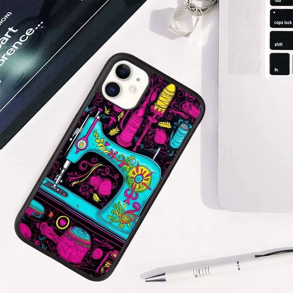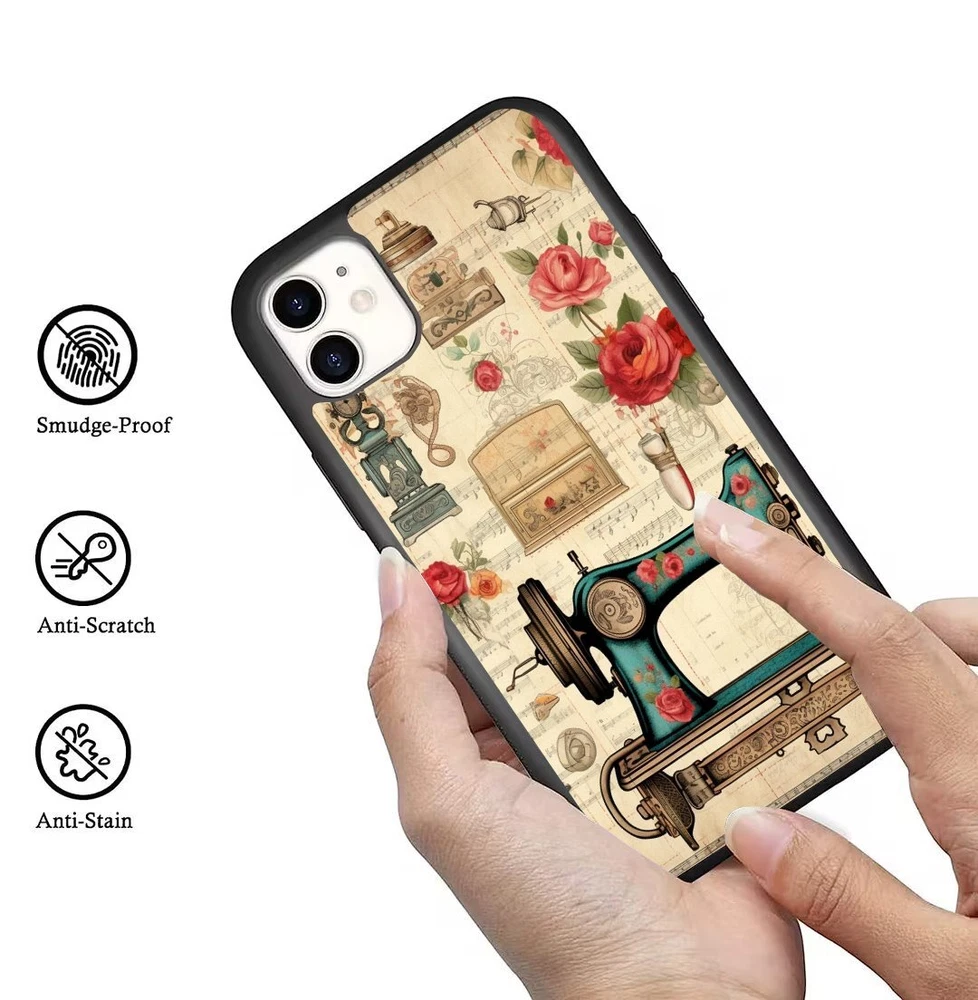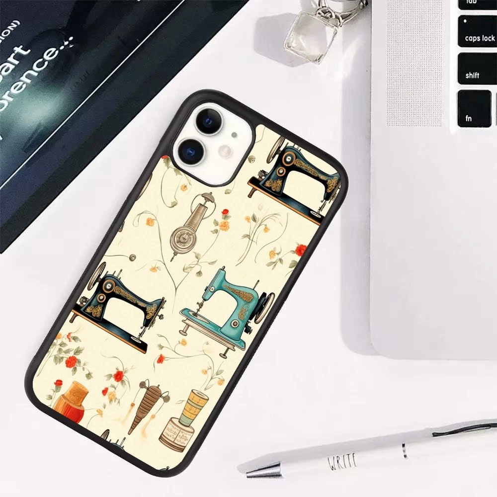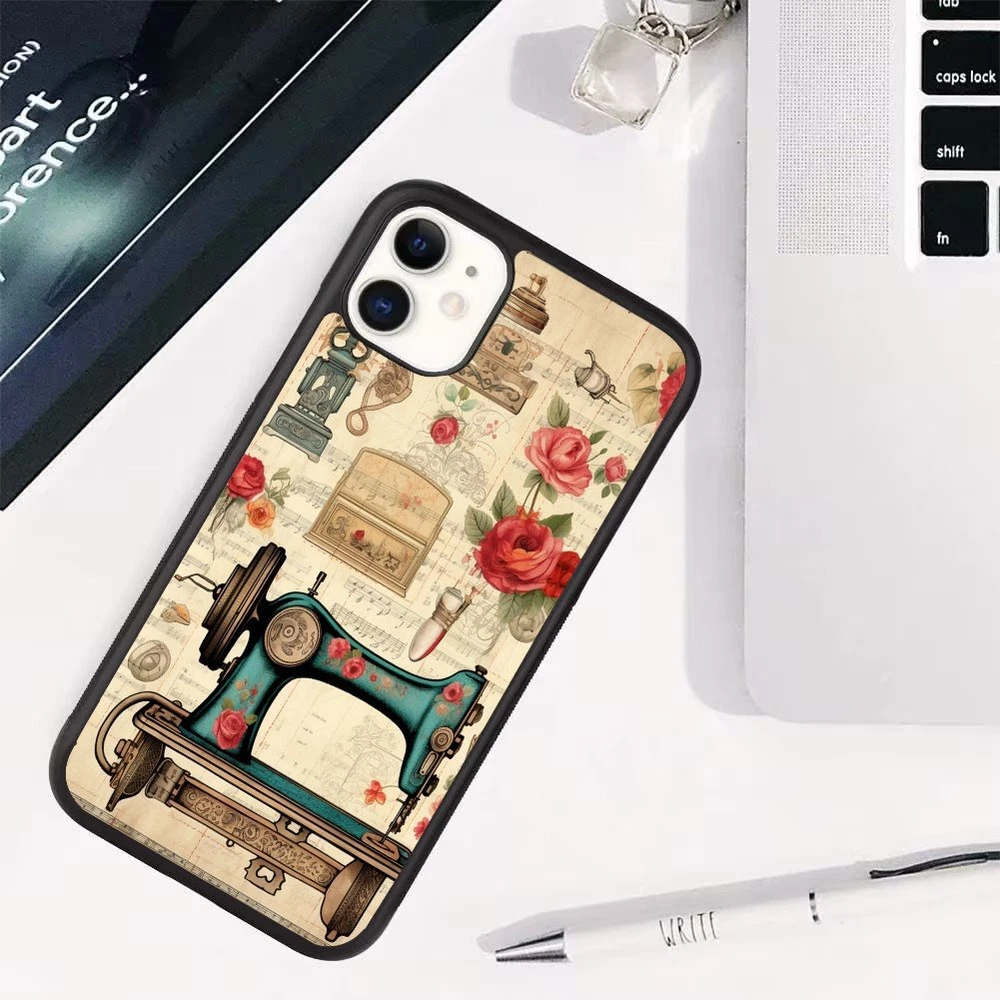 Sewing Machine Floral Print For Apple iPhone Samsung Galaxy Motorola Deluxe Case