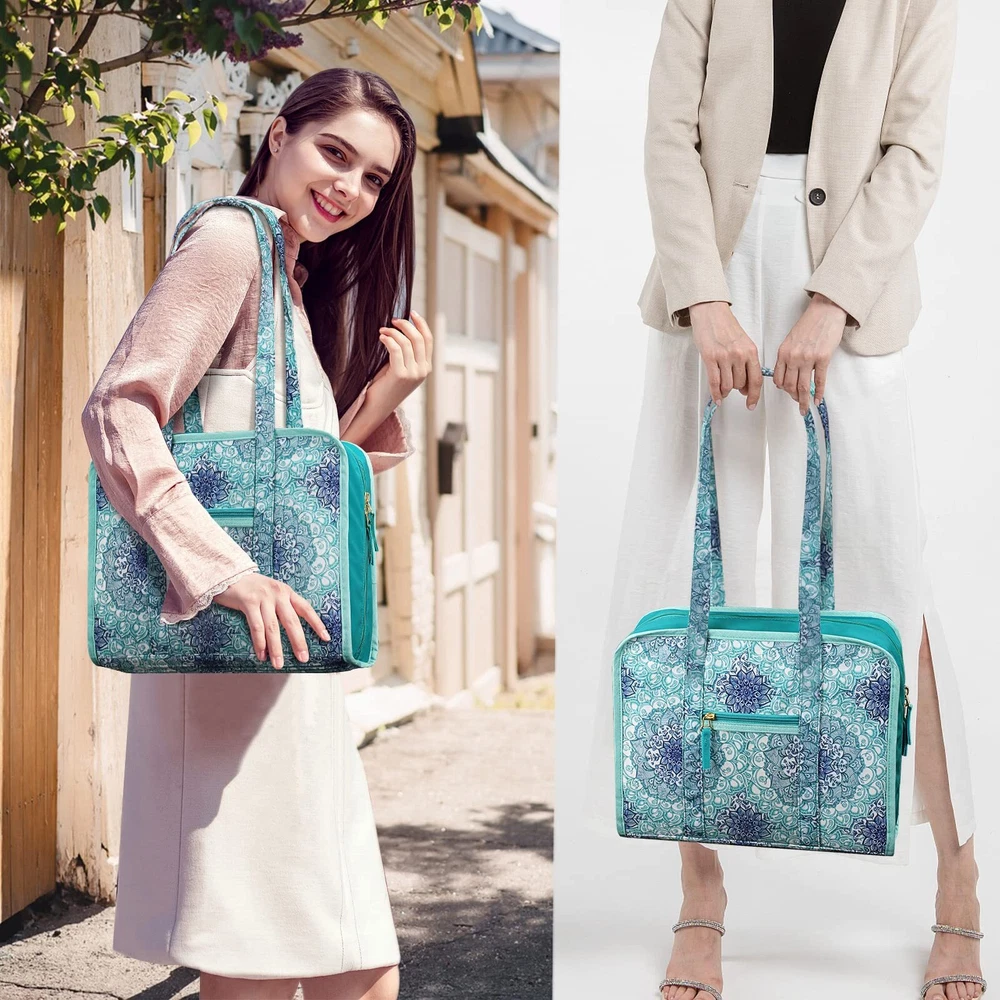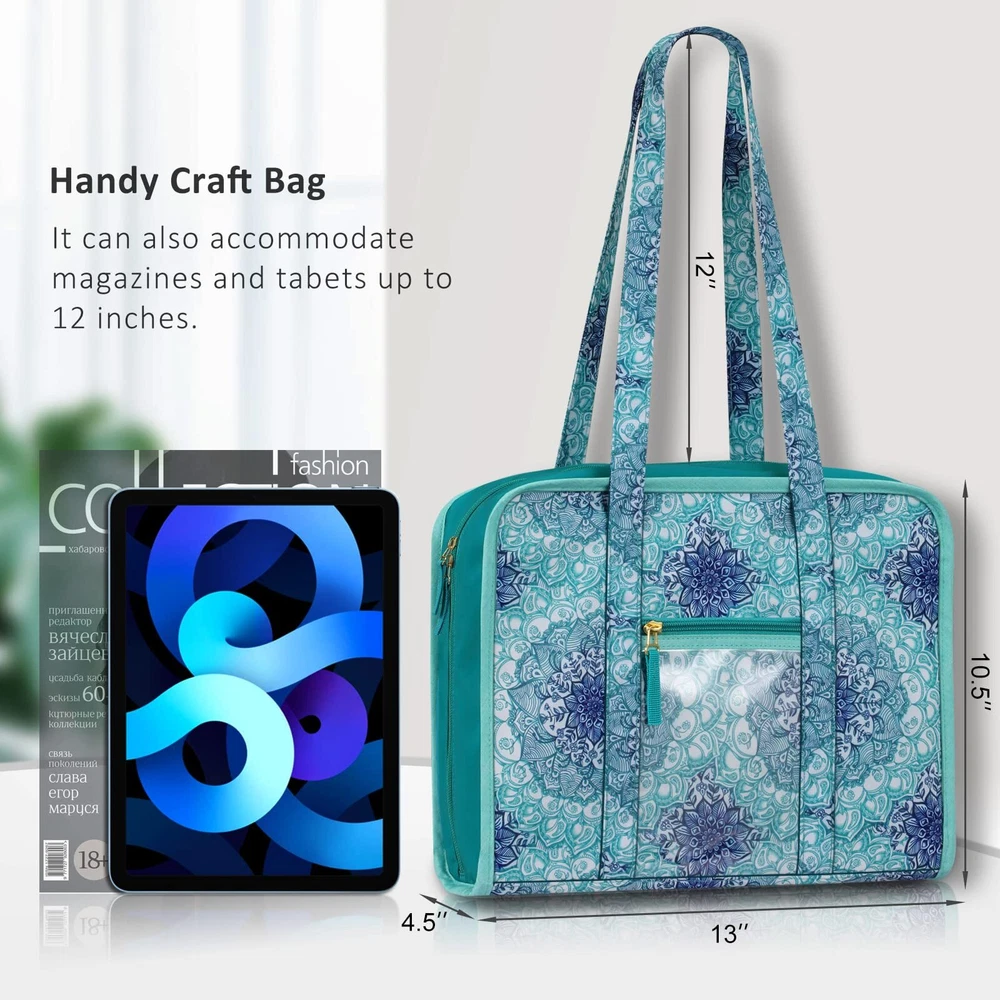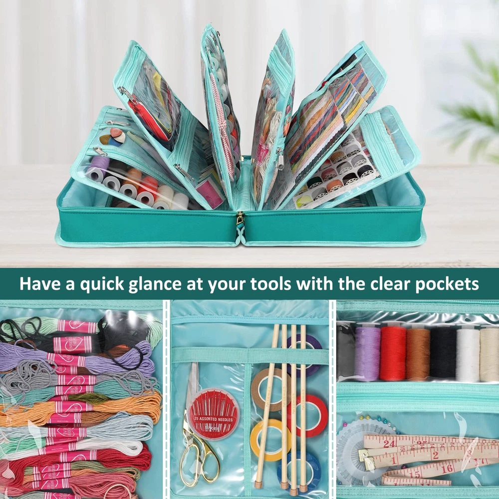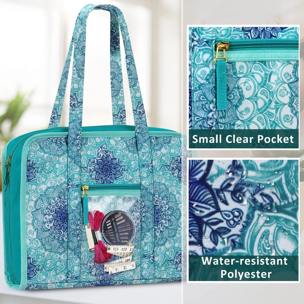 【Large Capacity Sewing Storage】Overall dimension: 13 x 4.5 x 10.5 inches (L x W x H), it comes with 8 sheets/ 14 pages of compartment for storing your sewing needles, scissors, measuring tape, beads, markers, fabrics, yarn, crayons, needles and more. 【Roomy Storage Bag】With clear PVC pockets and dividers which allow you to have quick access and glance. A small see-through front pocket for some small accessories or prepaid IC cards. 【Multi-function Craft Tote】This bag offers 5 types of pockets for your demands to sewing tools, craft tools, art tools, brushes, makeup tools, or any other item you would like to secure and organize. 【Premium Materials】The craft storage tote is made from 800D high-density polyester with a vivid pattern, which is stylish and durable for years of usage. 【Travel Storage Bag】Two top handles are long enough that you can put them over your shoulder as a shoulder bag or tote bag. You can take it on the go and make the trip easier. (Official Micklyn Le Feuvre Product)