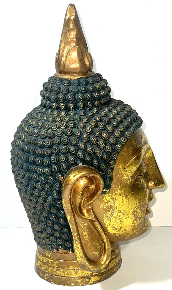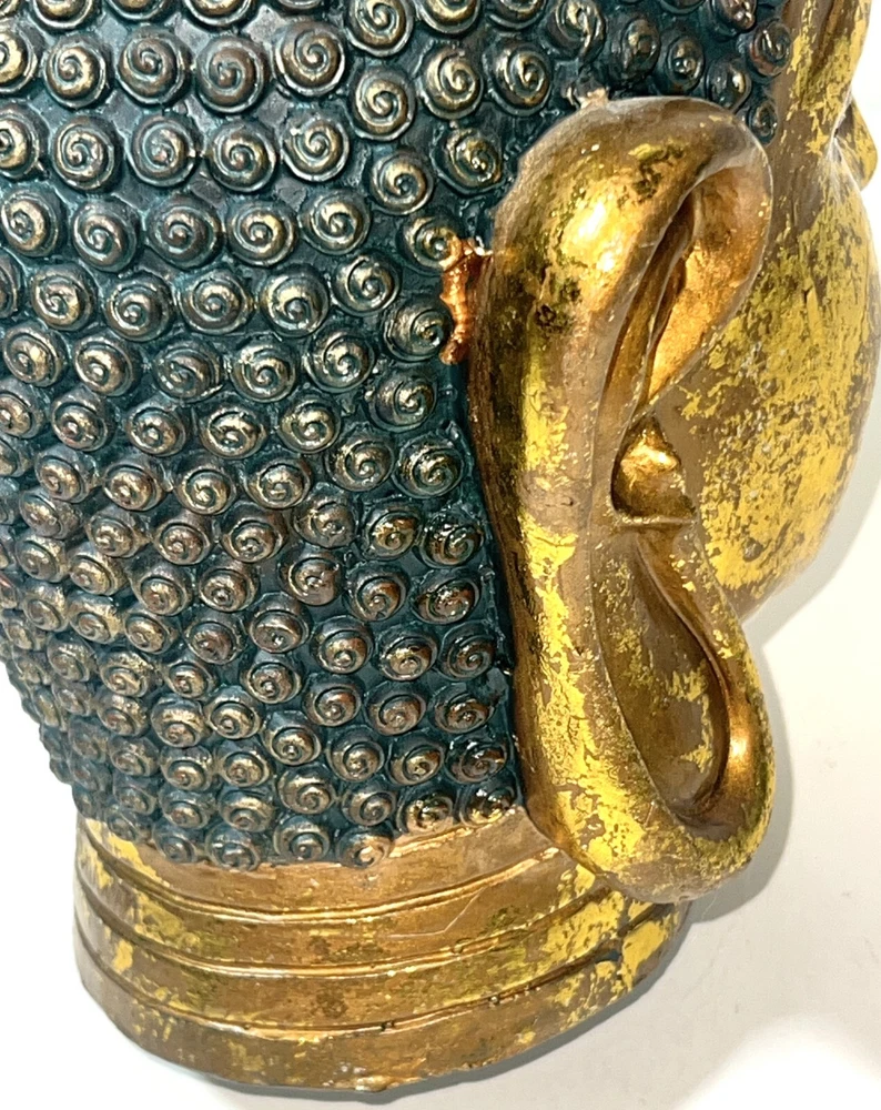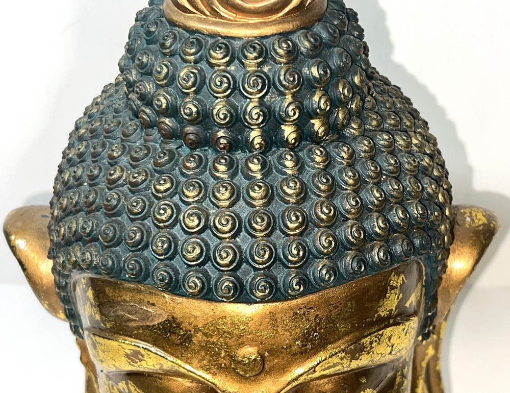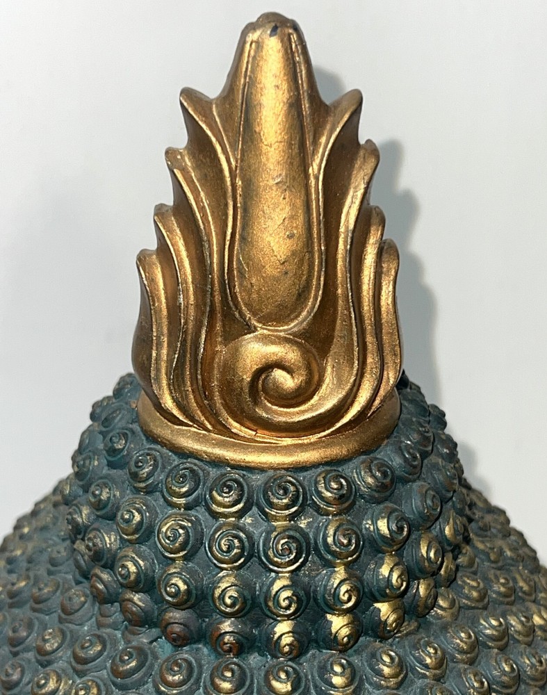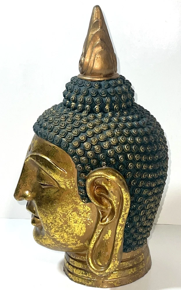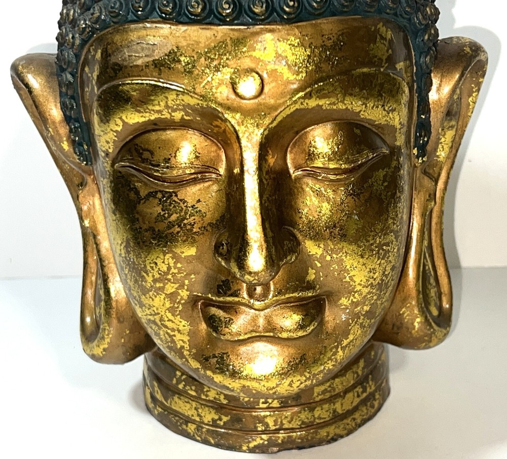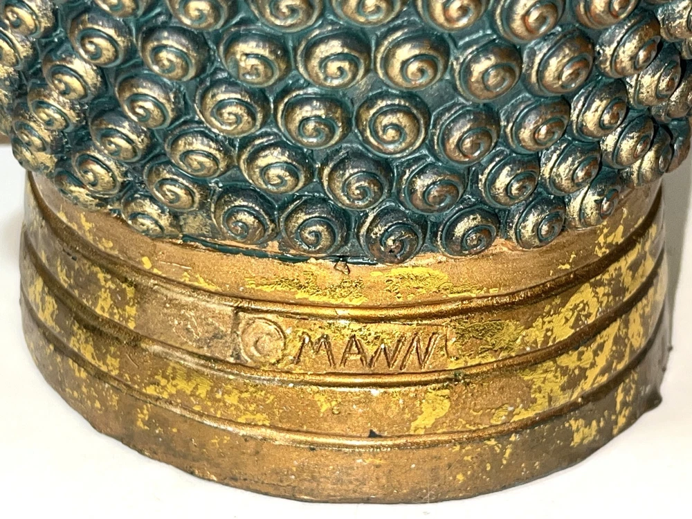 Seymour Mann Buddha Bust Head Figurine Statue Gold-Tone Gilt Resin 12.5" H x 7" W x 7" D Signed Great gently used condition with some minor normal usage wear including some small scuffs, see pics.