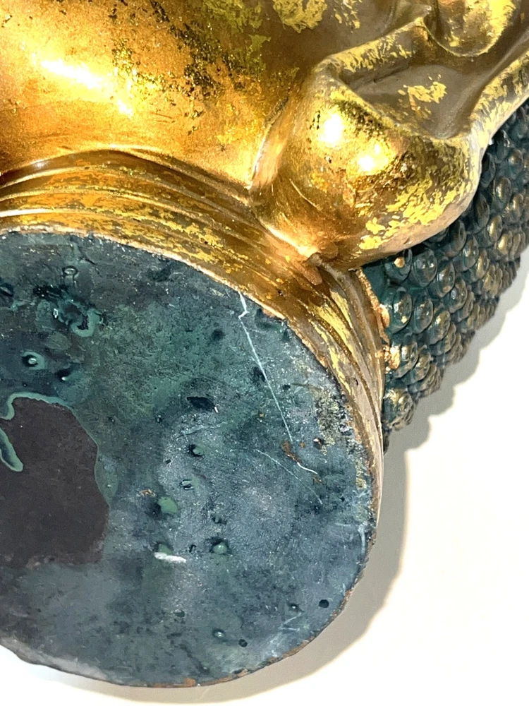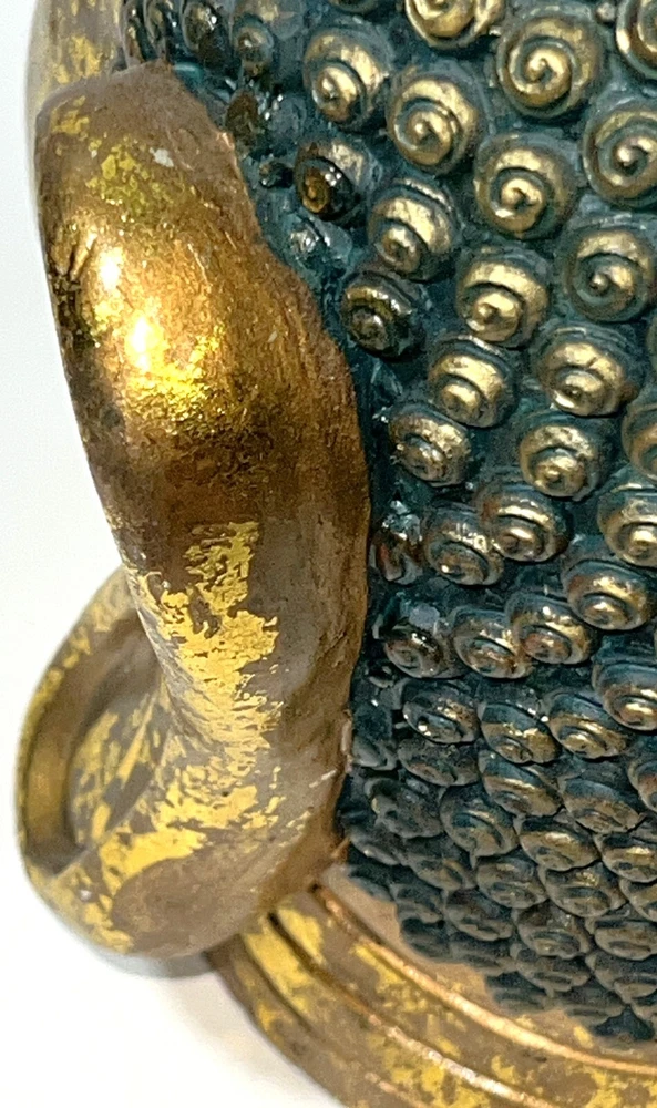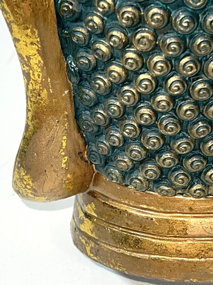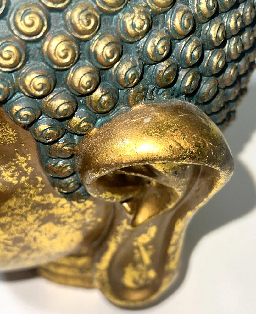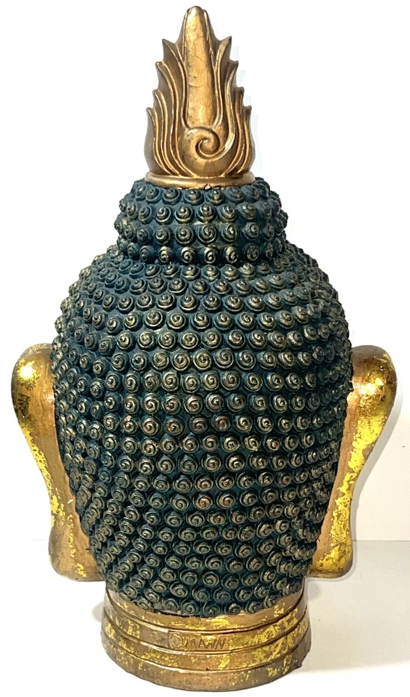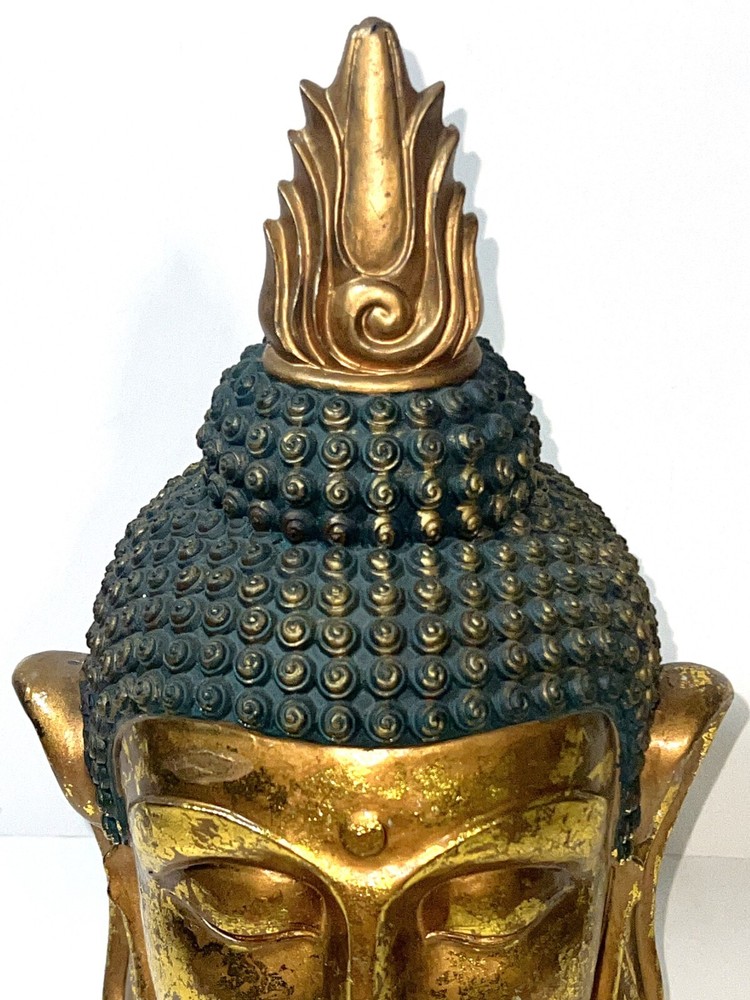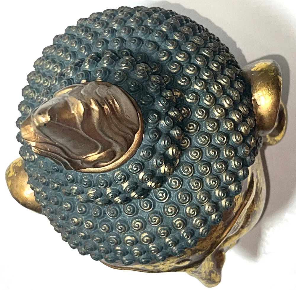 Seymour Mann Buddha Bust Head Figurine Statue Gold-Tone Gilt Resin 12.5" H x 7" W x 7" D Signed Great gently used condition with some minor normal usage wear including some small scuffs, see pics.