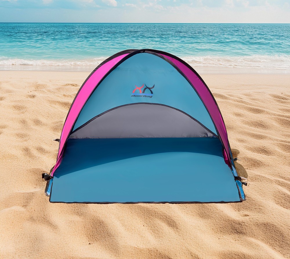 Specification: Color: Pink Blue/Blue/Orange Material: Polyester Weight: 310.3g Size: 25*25*8 cm Feature Description: Shade & Sun protection: Avoid facial sunburn while soaking up the sun on the beach, having a small tent provides shade and prevents UV rays from shining directly on your face. Windproof: The seaside is windy and there is also raised fine sand, with this small tent can achieve the effect of windproof and sandproof, so that you can enjoy the sunbathing more pleasantly. Easy to Install: This small tent can be opened automatically, and easy to organize, it is very convenient to carry on a trip! Multi-scenario application: You can use it in multiple scenarios, such as sunbathing on the beach, lounging by the pool, outdoor camping and various other activities.