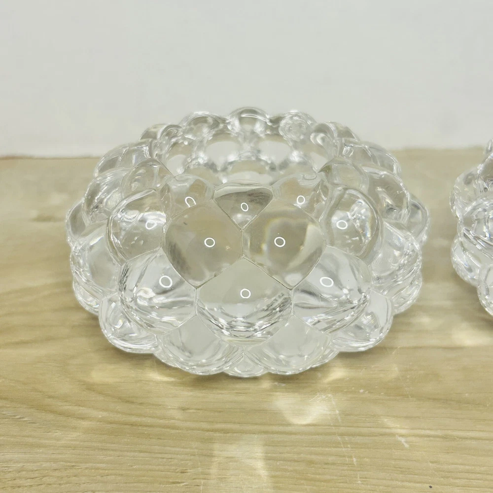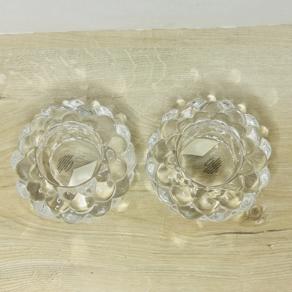 Set of 2 Shannon Crystal Designs of Ireland raspberry bubble style candle holders. Lead crystal. In excellent, like new condition with no chips, cracks or signs of use. Measures 2” tall x 3.5” diameter.