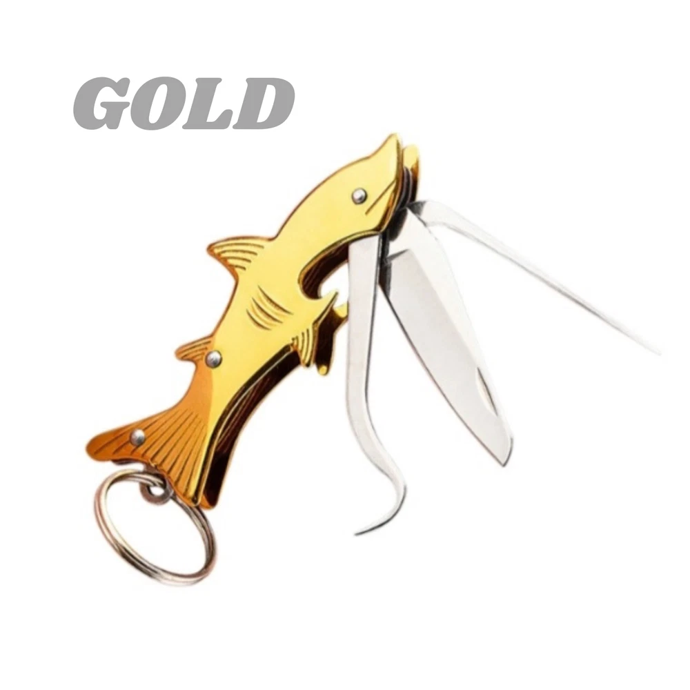 Shark Keychain Pocket Knife Bottle Opener Multifunctional Toothpick Outdoor Camping FAST FREE SIPPING Brand new and high quality Multifunctional Toothpick Knife Keychain – a powerhouse of functionality, convenience, and style, compactly designed for everyday carry Colors : GOLD/BRONZE, SILVER, IRIDIUM Package Included: 1* Knife Tool Material: Stainless steel made blade, sharp and solid. Handy to use, easy to folding and unfolding. Meet most of daily needs about knife - open carton boxes, cut small rope, etc. Creative design Shark shape folding knife, perfect for daily life . Unique Fish style design, pocket size. Features 100% Brand new Mini Fish shaped folding knife pocket knife, anti-wear, anti-rust, nice quality and real sharp Best for your pocket and backpack. Compact and easy to carry, sharp stainless steel blade, curve belly great for cutting, slicing, peeling, etc. Practical knife cutter peeler EDC tools, multi-use portable knife, fruit knife, outdoor survival knives, emergency defensive knife, camping knife, etc. Apply to various usage: Package/Box/Letter opening, camping, fishing, peeler, climbing, travelling, utility blade. GREAT GIFT IDEA PERFECT FRIENDSHIP GIFT - Great as a Friendship Gift, Father's Day gift, graduation gift, wedding or groomsman gift, golf tournaments, corporate gifts, etc. Specifications GMS knife Blade Material: 430 steel Handle Material: Aluminum/Bronze Full Length: 4.13''+ Inch Blade Length: 1.57'' Inch Blade Width: 1 0mm Blade Thickness: 2mm Package Included 1 x Folding Knife + Jewelry Pouch (As pictured) Please visit my store for more items https://www.ebay.com/str/ thegoodmanservice Payment: We accept PayPal payment only! Payments must be made within 2 days after you have won and committed to item purchase. We reserve the right to cancel the transaction if timely payment is not received. We ship to any VALID address, please add your shipping address into your PayPal account prior to make purchase We DO NOT change delivery address after payment is made or while en route to original . If your shipping address is not the one listed on your payment, we can help you to cancel the order first and place a new order with correct address. Serious buyer only. Non-paying bidder will be reported to ebay and ebay unpaid strike will be followed. Return Policy: Return must be requested within 3 days of item delivery. Buyer is responsible for return shipping. Item MUST be in the same NEW condition and UNOPENED packaging 20% of original selling price will be charged for returned item as reinstock fee. We DO NOT waive restock fee under any circumstances. Any type of mail fraud will lead to legal ramification. Refund will be processed after we receive the returned item and verify its status. We reserve the right to charge extra fees if item returned is damaged or intentionally abused. We reserve the right of final explanation of the return policy Feedback -At GoodMan Service we strive for 100% customer satisfaction. If you are not satisfied do not leave negative feedback in retaliation for a defective product or something you were not expecting. Please just contact us through Ebay messages and we will quickly resolve the matter. Also always remember to leave 5 stars for each of the 4 categories when leaving feedback.