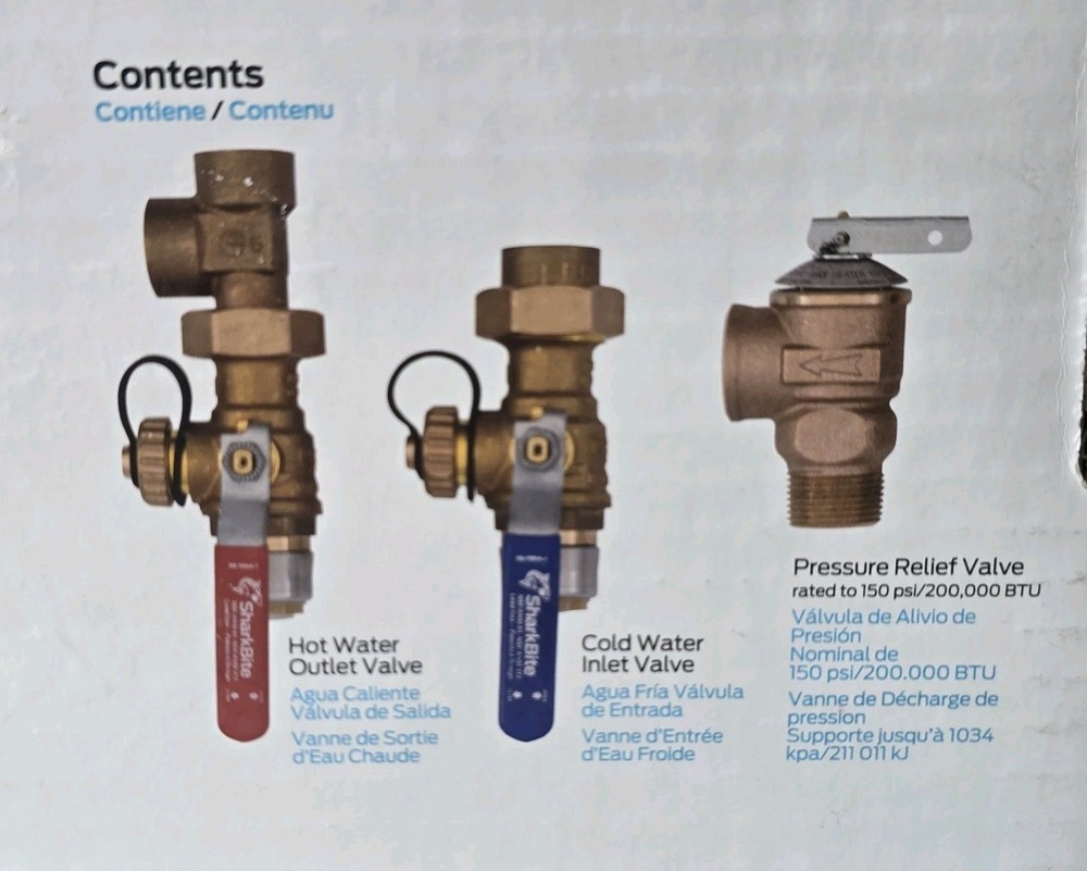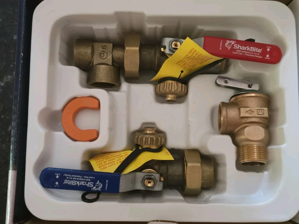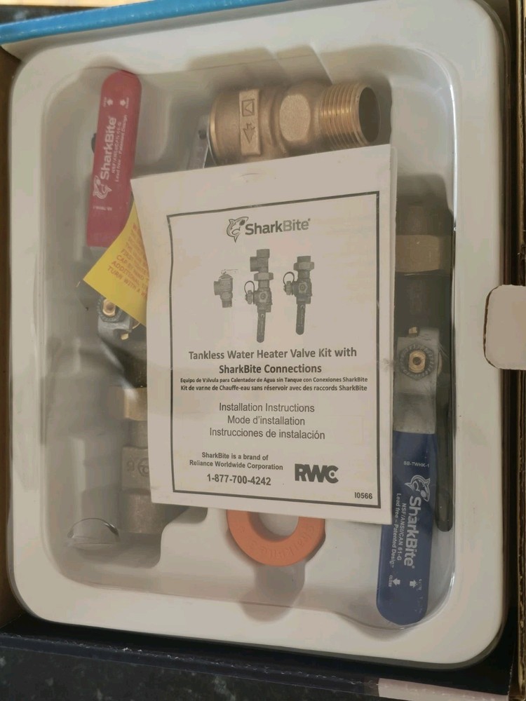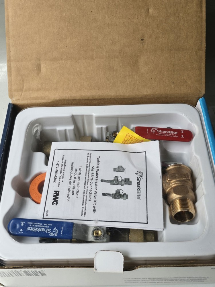 This is a NEW OPEN BOX item. The SharkBite Tankless Water Heater Service Valves Kit is the ultimate solution for seamless installation and hassle-free maintenance of your tankless water heater. Designed with SharkBite’s Push-to-Connect technology , this kit allows for a quick and secure connection to copper, PEX, and CPVC pipes— no soldering, crimping, or glue required . The color-coded handles provide easy identification of hot and cold valves , while the slim-fit design ensures a perfect fit for recessed or covered boxes. Key Features: Heavy-Duty Construction – Forged brass valves with full-port main flow channel for maximum durability Push-to-Connect Technology – Easily connects to PEX, Copper, CPVC, and PE-RT without special tools Hot & Cold Water Control – Color-coded handles for quick identification and easy shut-off 3-Way Ball Valve Design – Provides single-turn handle operation , ideal for tight spaces Pressure Relief Valve Included – Ensures safe system operation High Performance – Rated up to 150 PSI Slim-Fit Valve Design – Perfect for recessed or covered boxes Ideal for professionals and DIY installers , the SharkBite Tankless Water Heater Service Valves Kit provides a fast, efficient, and reliable solution for controlling and maintaining your water heating system. We take great care to inspect all items and ensure they are accurately described. Should you have any issues with your purchase, please let us know immediately. We are committed to resolving any concerns promptly and to your satisfaction. Our small business truly appreciates your patronage.