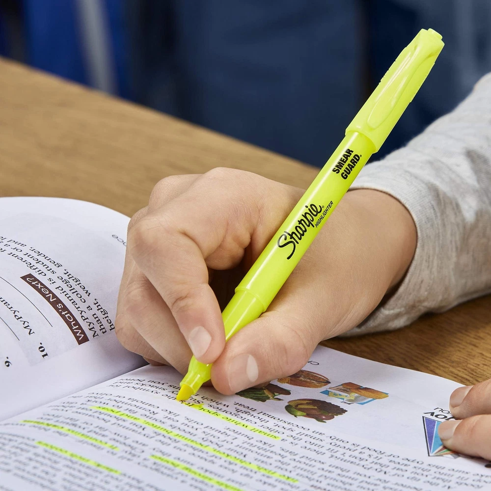 Sharpie's Pack of 36 Pocket Highlighters is the perfect addition to any office, school, or home environment. Their vivid, high-contrast shades make highlighted text stand out on the page, while the slim design ensures they’re easy to control, light on your hands, and convenient to store. The narrow chisel tip is excellent for highlighting, underlining, and writing notes. Resistent to many pen and marker inks, each vibrant Sharpie highlighter is reliable, long-lasting and ensures effortless reading of highlighted text. Assorted Colors: 36 Sharpie highlighters - 8 yellow, 6 orange, 6 pink, 6 blue, 6 green, and 4 lavender Easy to Control: Slim body provides a comfortable grip and ease of use Multi-purpose Tip: Excellent for highlighting, underlining, and note writing Smudge-Free: Resistant to smearing of many pen and marker inks Vibrant and High-Contrast: Remarkably bright colors that pop out on the page Long-lasting: Dependable for regular use over lengthy periods Ideal for All: Perfect for office, school, or home use