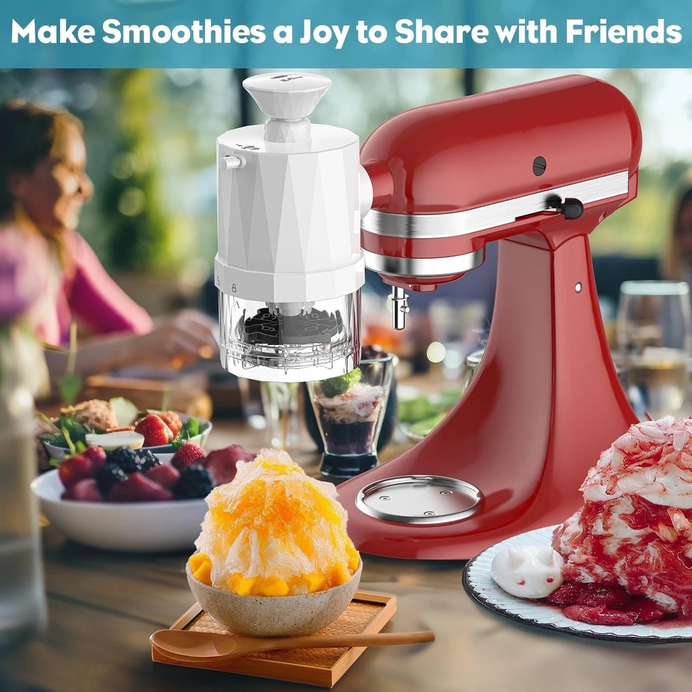 Shave Ice Attachment for KitchenAid Stand Mixer – Create Perfect Shaved Ice at Home! Transform your KitchenAid Stand Mixer into a shaved ice machine with this innovative Shave Ice Attachment! Designed to deliver professional-quality shaved ice right in your own kitchen, this attachment is perfect for creating refreshing treats, desserts, and beverages for any occasion. Whether you’re hosting a summer party, celebrating a special event, or simply craving a cool treat, this attachment makes it easy to craft fluffy, snow-like shaved ice in minutes. Key Features: - Premium Quality Construction: Crafted from durable materials, this attachment is built to last and seamlessly integrates with your KitchenAid Stand Mixer for reliable performance. - Fluffy, Snow-Like Texture: The precision-engineered blade shaves ice into a fine, fluffy consistency, perfect for creating your favorite shaved ice desserts. - Easy to Use: Simply attach the shave ice accessory to your stand mixer, add ice cubes, and let the mixer do the work. It’s quick, effortless, and mess-free! - Versatile & Fun: Ideal for making classic shaved ice, snow cones, tropical treats, or even creative desserts like halo-halo or bingsu. Customize with your favorite syrups, fruits, or toppings for endless possibilities. - Compact & Convenient: The attachment is compact and easy to store, making it a great addition to your kitchen tools without taking up much space. Why Choose This Shave Ice Attachment? Say goodbye to store-bought shaved ice and hello to homemade creations that are fresher, tastier, and more fun! This attachment is perfect for families, entertainers, or anyone who loves experimenting in the kitchen. It’s a must-have for summer gatherings, birthday parties, or simply treating yourself to a cool, refreshing dessert anytime. Compatibility: Compatible with most KitchenAid Stand Mixer models, ensuring a seamless fit and hassle-free operation. What’s Included: - 1 x Shave Ice Attachment - Easy-to-follow instructions Make Every Day a Shaved Ice Day! With this Shave Ice Attachment, you can bring the joy of shaved ice into your home anytime. It’s the perfect way to cool down, get creative, and impress your family and friends with delicious, customizable treats. Order now and start enjoying the ultimate shaved ice experience! Efficient Shaved Ice in Seconds: Transform your KitchenAid stand mixer into a powerful shaved ice machine with premium blades that shave ice in under 60 seconds. Includes 8 ice molds for perfectly shaped cubes, producing over 1 pint (500 ml) of fluffy, refreshing shaved ice effortlessly. Unleash Your Creativity: Create endless shaved ice masterpieces in just 3 easy steps: freeze your favorite juice in the included molds, shave the cubes, and top with jams, syrups, or even yogurt and coffee for a personalized treat. Perfect for experimenting with flavors! Customizable Texture & Easy Cleaning: Choose between coarse or fine ice blades to tailor the texture of your shaved ice. Designed for hassle-free cleaning, most parts are dishwasher-safe (main body excluded), saving you time and effort. Versatile & Compatible: Compatible with most KitchenAid stand mixers, this attachment is perfect for crafting Mojitos, Margaritas, iced coffee, and more. Elevate your summer with a variety of chilled, flavorful creations. Reliable Quality & Support: Ideal for home use, parties, or gatherings, this shaved ice attachment comes with a 1-year warranty and dedicated after-sales service. Enjoy worry-free icy treats all summer long!