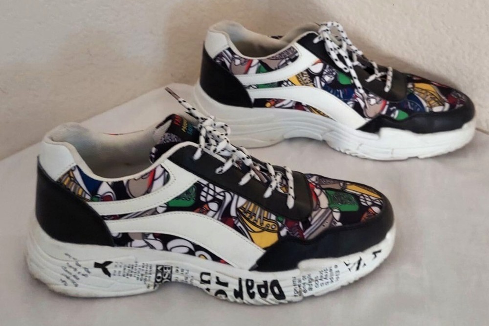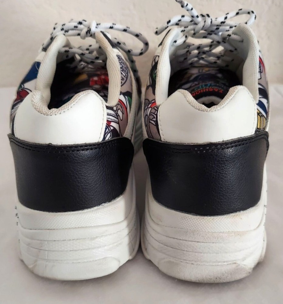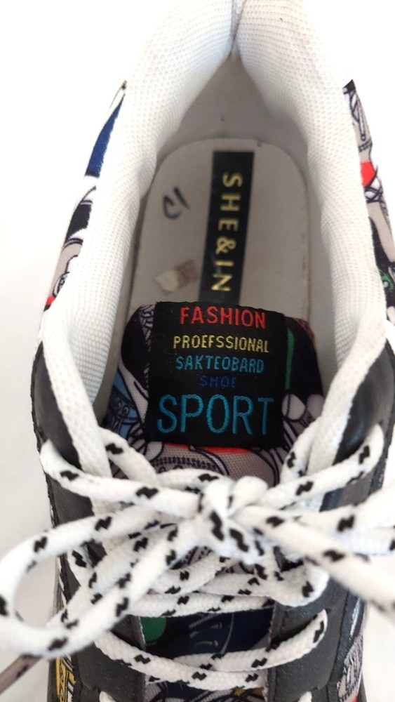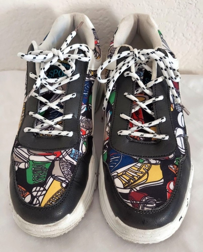 She&In Black White Shoes With Colorful Abstract Art And Number Pattern Size 11 These shoes are in very good used condition. Please see pictures. Any questions please feel free to ask, Thanks for looking!
