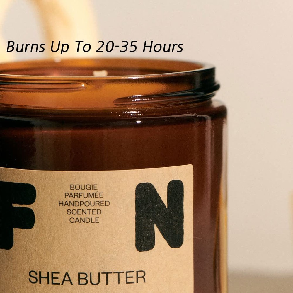 Shea Butter Scented soy Candle, Amber Jar glass, 8 oz Candle made from 100% hand-poured soy wax beautiful amber decorative glass jar burns for 20-35 hours for a long-lasting scent SHEA BUTTER is warm, cozy, and everything you need after a long day Made with phthalate-free fragrance oil, high-quality eco candle - wick that you can trim yourself, will arrive gift wrapped, ready for gift giving