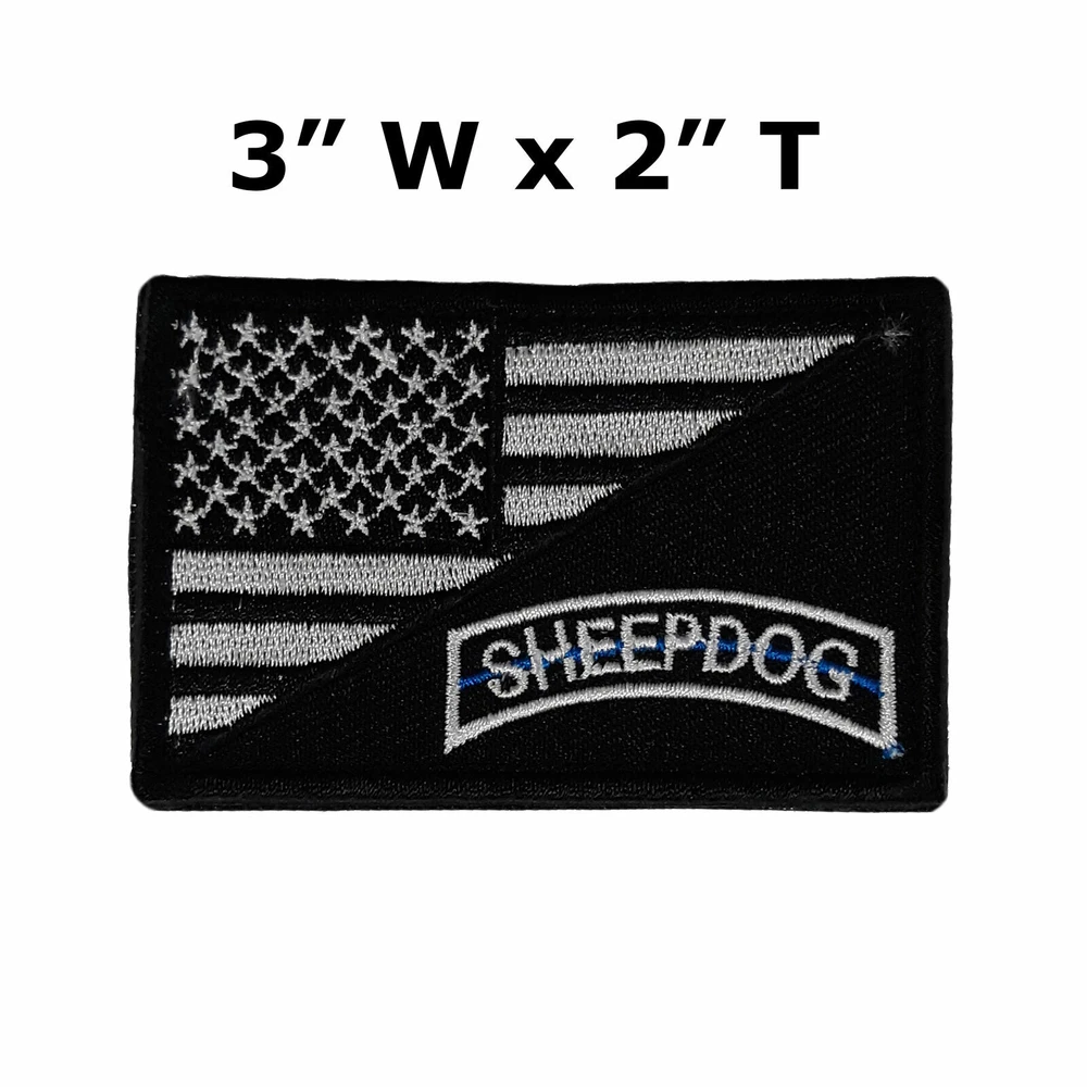 Sheepdog US Flag Embroidered Hook & Loop Patch Applique Police Support Biker