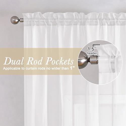 White Sheer Curtains 63 Inch Length 2 Panels, Elegant Voile Drapes for