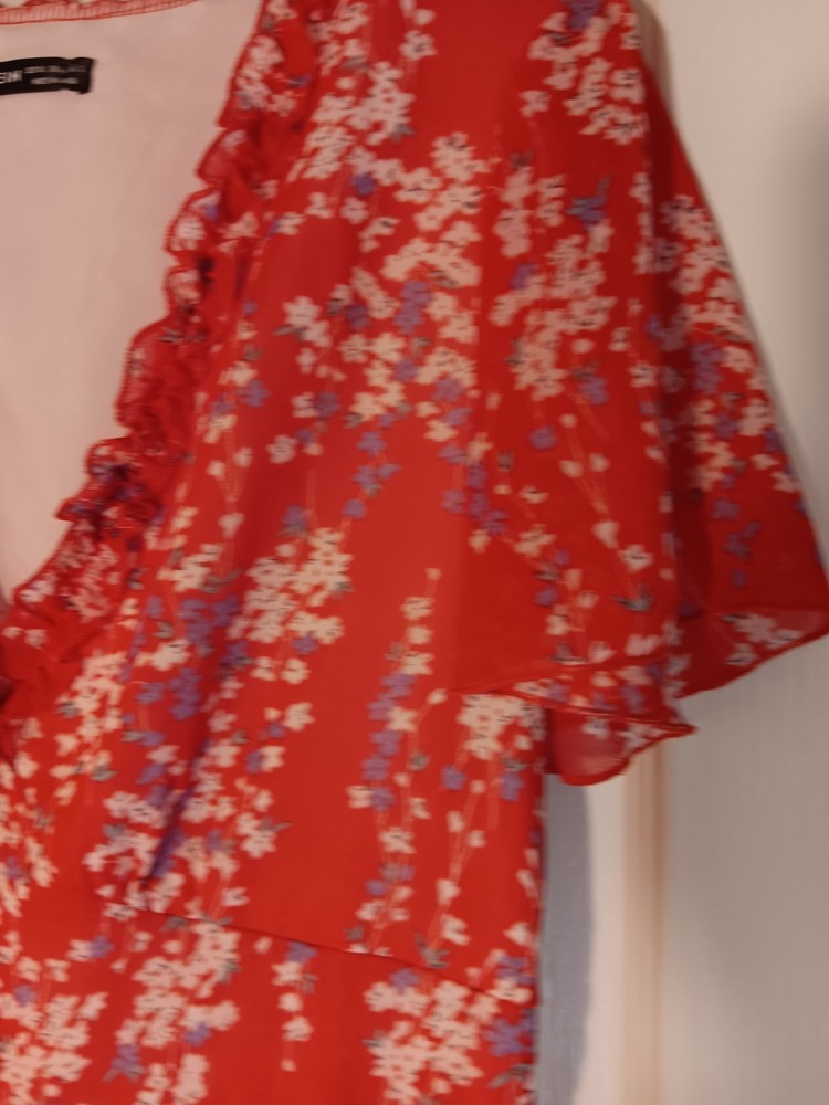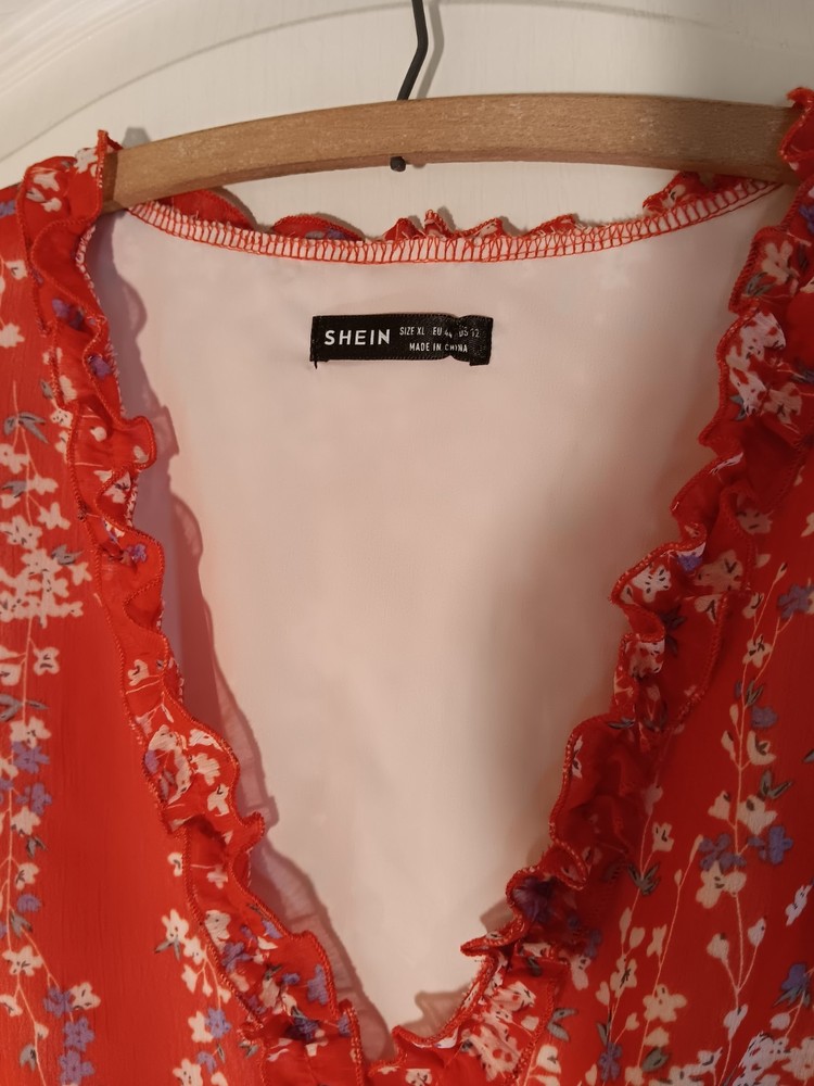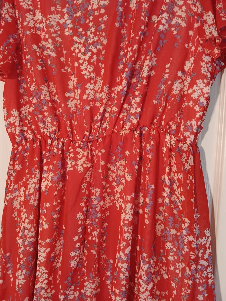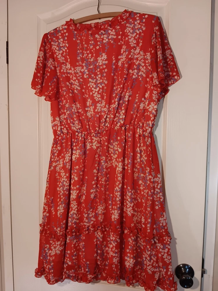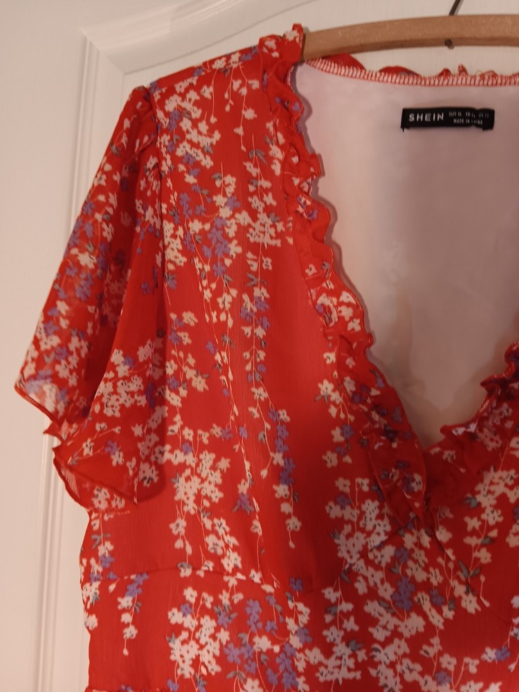 Shein Women's Floral Print L Short Sleeve V-Neck, Red Dress