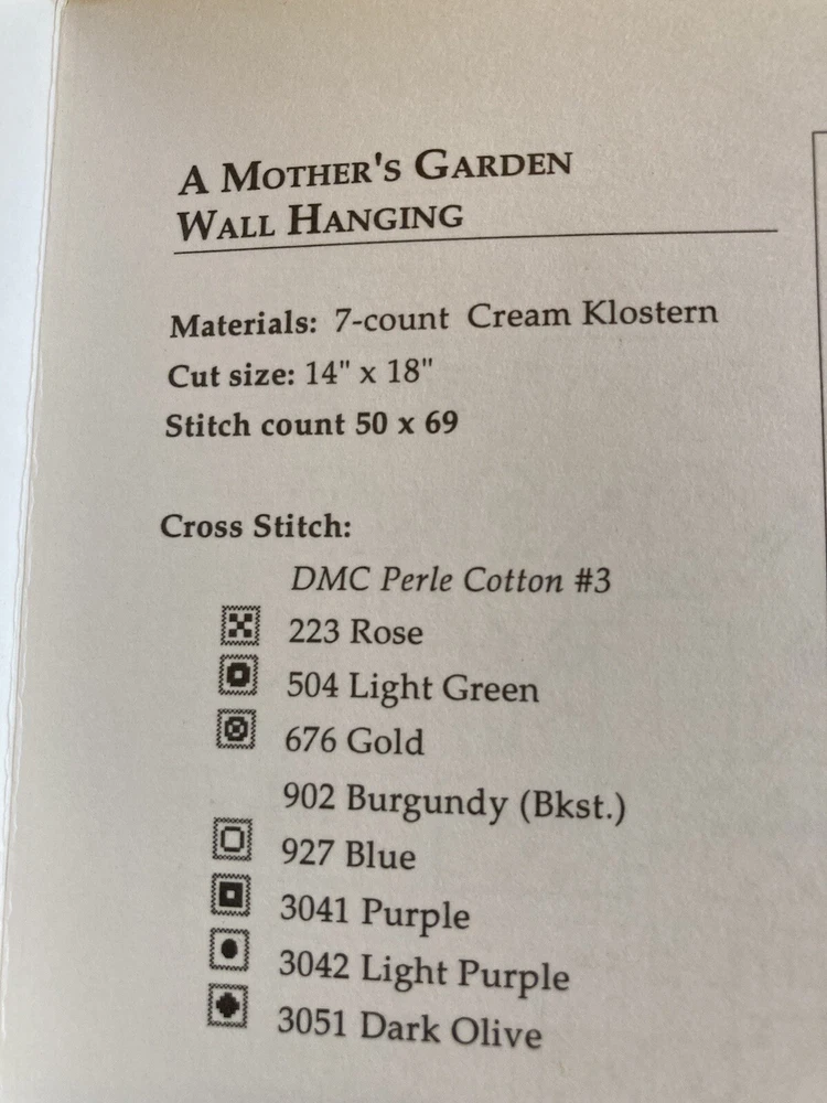 This Shepherd's Bush A MOTHER'S GARDEN pattern booklet features a Wall Hanging, Pillow, and Tin Heart. Each beautiful pattern offers a heartwarming appreciation for mother. See photos for more details. Check out my other cross stitch items for sale. I will combine shipping. Please note my no return policy. Item is as described. Tracking included with shipping.