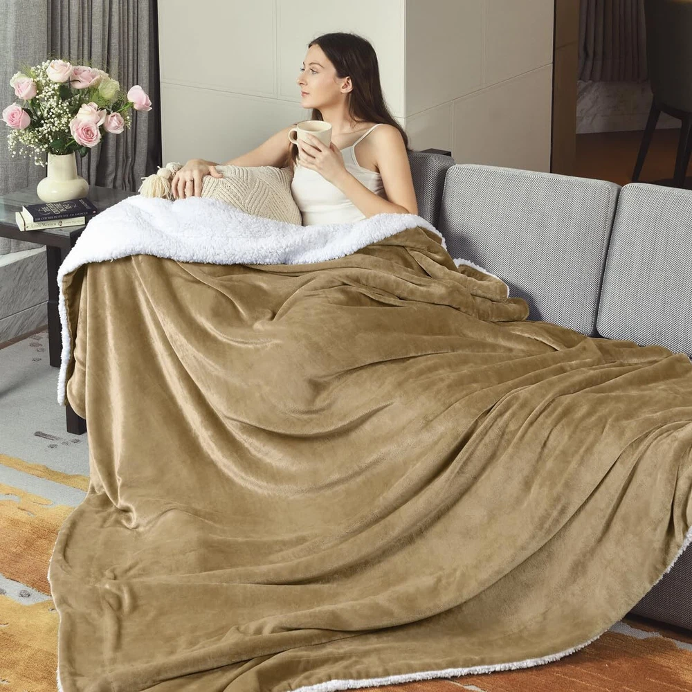 ❤❤❤❤❤ MATERIAL ❤❤❤❤❤ This super soft warm Sherpa blanket comes with dual-sided features and a mixture of truly elegant and soft fabrics. The front side of this throw blanket has a super soft flannel fleece. This provides a richer look and a fantastic sheen, while the back has a Sherpa fleece feel. ❤❤❤❤❤ VERSATILE ❤❤❤❤❤ This blanket's material makes it suitable for all seasons. It is perfect for watching TV in one's room or lying on a sofa or bed. It will add extra texture to your living room. It is also suitable for outdoor travel, as its comfortable casual appearance allows it to maintain your warmth and comfort. ❤❤❤❤❤ EXCELLENT QUALITY ❤❤❤❤❤ ★Selection of high-quality fabrics, touch silky, milk-like lubrication, fluff delicate. ★Fine workmanship, non-off-line, not running, durable, elegant appearance. ★It is made from natural materials with no added chemicals, making it safe for your family. ★This blanket's manufacturing process includes a multi-channel carding process that increases its warmth and a thickened encryption process to make it more comfortable. ★Its American cross packaging, with an exclusively designed girdle color card and a matching ribbon make it look beautiful and elegant. It is a perfect gift choice for birthdays, weddings, Christmas, Mother's Day or Thanksgiving. HEAVY & THICK : 250 Gsm Fleece And 250 Gsm Sherpa, One Side Looks Smooth And The Other Touches Fluffy And Cozy, Use Eco-friendly Dyes To Ensure Blanket Hypoallergenic And Anti-static 4 SIZE AVAILABLE:Extra Warm Sherpa Blanket Is Available In Throw, Twin, Queen And King Size, Bring Chic Look To Your Bedrooms, Living Rooms, Sofa, Couch, Car And Offices VERSATILITY: A Perfect Choice For Camping Outdoor In Spring, Napping In Air-Condition Room In Summer, Reading On Sofa In Fall/Autumn And Snuggling In Bed In Winter With Pets NICE GIFT: Given Its Beautiful Pattern,This Plush Sherpa Fleece Blanket Can Be A Good Choice As A Gift,Which Conveys The Concern And Blessing To Your Family, Friends And Lover EASY CARE: Machine Wash Cold Separately, Gently Cycle Only, No Bleach, Tumble Dry Low, Do Not Iron. This Fluffy Blanket Will Not Shed, Pill And Fall Apart After Washing