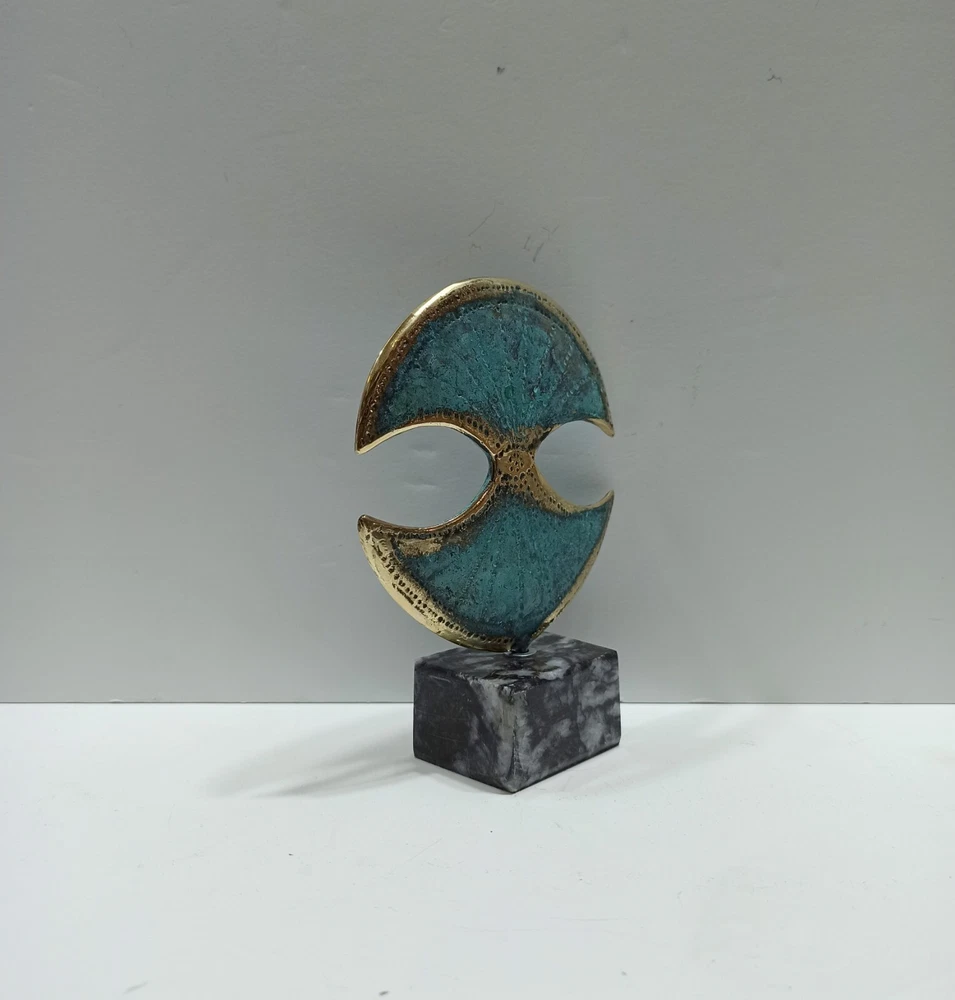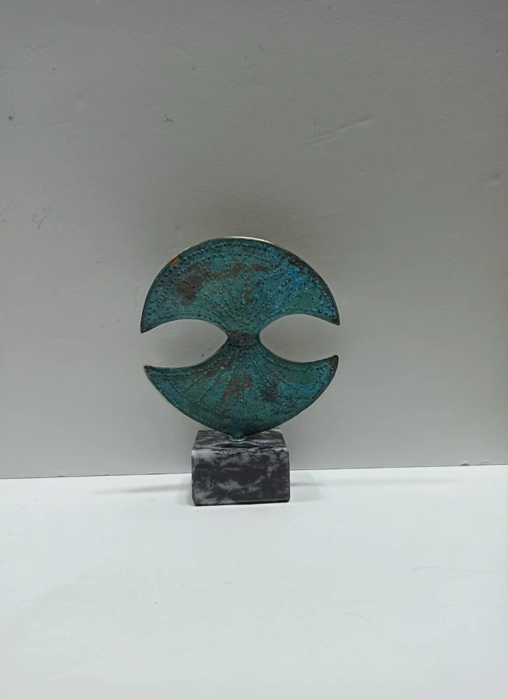 Shield of Achilles - King of the Myrmidons - Greek Hero - Son of Thetis and Peleus - Trojan War - Homer's Iliad - pure Bronze Sculpture Condition: New, Made in Greece. Material: Pure Bronze Height: 14 cm - 5,5 inches Width 10,5 cm - 4,1 inches Length: 3,5 cm - 1,4 inches Weight: 390 g In Greek mythology, Achilles was a hero of the Trojan War, the greatest of all the Greek warriors, and is the central character of Homer's Iliad. He was the son of the Nereid Thetis and Peleus, king of Phthia. Achilles' most notable feat during the Trojan War was the slaying of the Trojan prince Hector outside the gates of Troy. Although the death of Achilles is not presented in the Iliad, other sources concur that he was killed near the end of the Trojan War by Paris, who shot him in the heel with an arrow. Later legends (beginning with Statius' unfinished epic Achilleid, written in the 1st century AD) state that Achilles was invulnerable in all of his body except for one heel, because when his mother Thetis dipped him in the river Styx as an infant, she held him by one of his heels. Alluding to these legends, the term "Achilles' heel" has come to mean a point of weakness, especially in someone or something with an otherwise strong constitution. The Achilles tendon is also named after him due to these legends. KAT GR-296 ΑΣΠΙΔΑ ΑΧΙΛΛΕΑ - 11,97 *********************