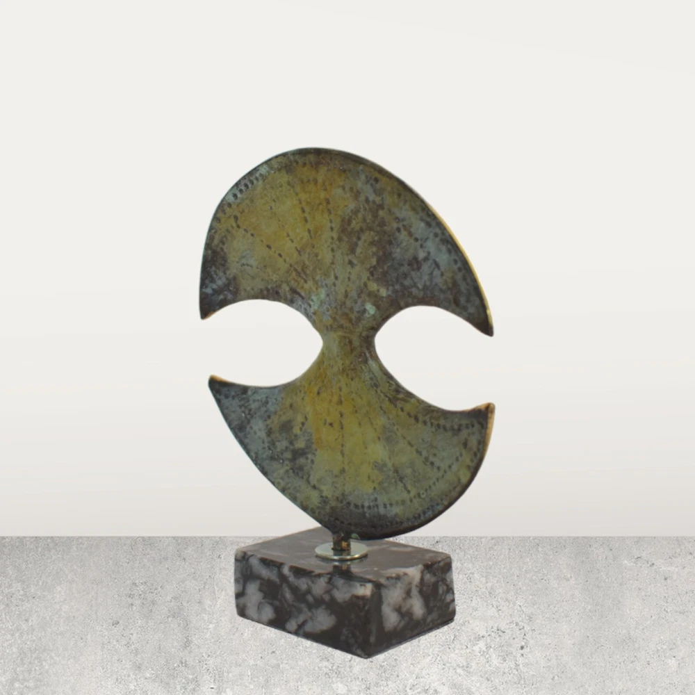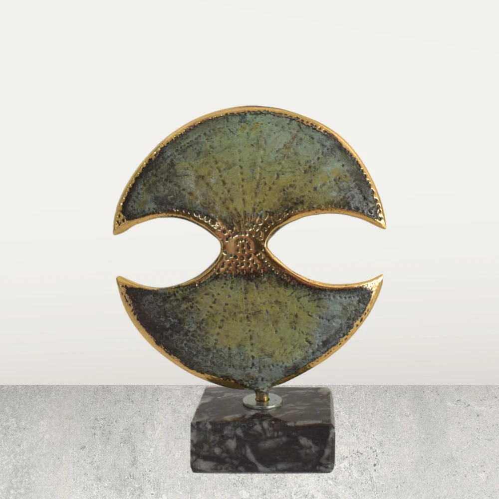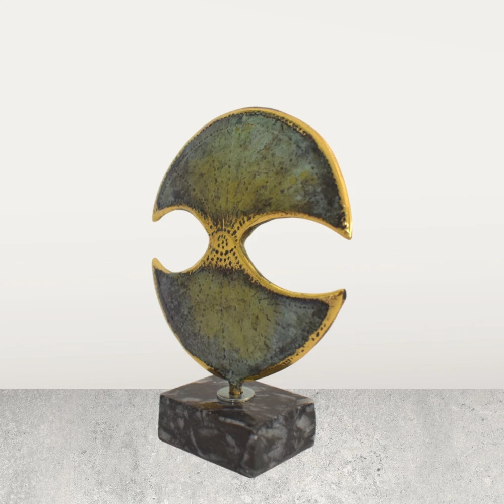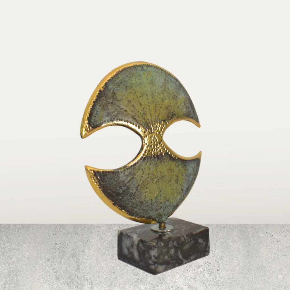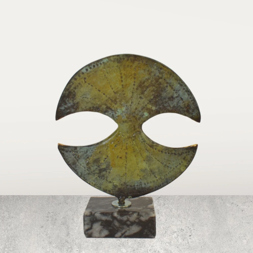 Shield of Achilles - King of the Myrmidons - Greek Hero - Son of Thetis and Peleus - Trojan War - Homer's Iliad - pure Bronze Sculpture Condition: New, Made in Greece. Material: Pure Bronze Height: 13 cm - 5,1 inches Width 10 cm - 3,9 inches Length: 4 cm - 1,6 inches Weight: 340 g In Greek mythology, Achilles was a hero of the Trojan War, the greatest of all the Greek warriors, and is the central character of Homer's Iliad. He was the son of the Nereid Thetis and Peleus, king of Phthia. Achilles' most notable feat during the Trojan War was the slaying of the Trojan prince Hector outside the gates of Troy. Although the death of Achilles is not presented in the Iliad, other sources concur that he was killed near the end of the Trojan War by Paris, who shot him in the heel with an arrow. Later legends (beginning with Statius' unfinished epic Achilleid, written in the 1st century AD) state that Achilles was invulnerable in all of his body except for one heel, because when his mother Thetis dipped him in the river Styx as an infant, she held him by one of his heels. Alluding to these legends, the term "Achilles' heel" has come to mean a point of weakness, especially in someone or something with an otherwise strong constitution. The Achilles tendon is also named after him due to these legends. KAT MV-1296 ΑΣΠΙΔΑ ΑΧΙΛΛΕΑ - 13,96 *********************