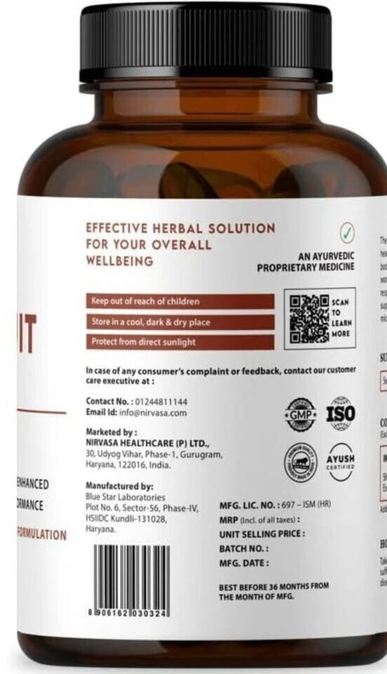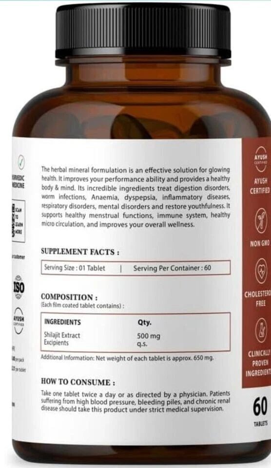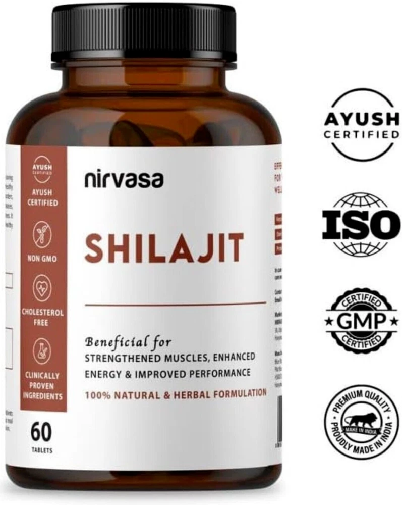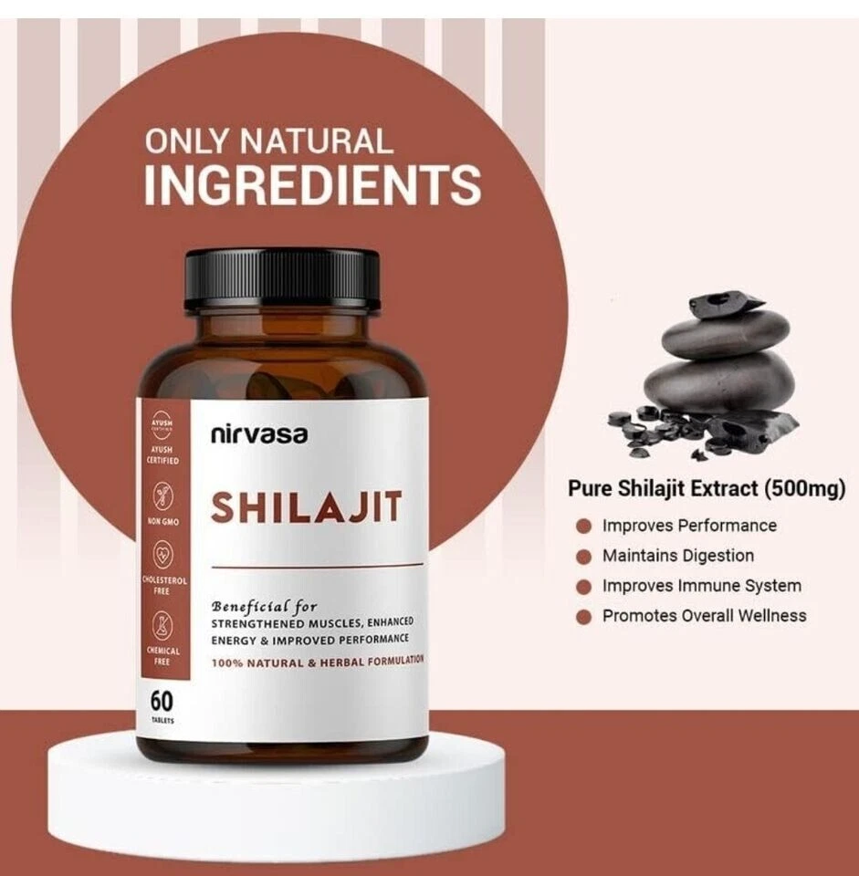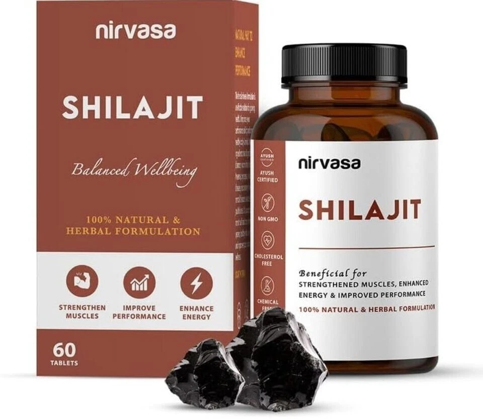 INGREDIENTS EFFICACY: Pure Shilajit Tablet comprises pure Shilajit extract that progresses overall well-being. Regular consumption of Shilajit Tablets for men and women helps better sleep facilitates a healthy gut, and increases energy levels, thereby upsurges physical and workout performance. It upgrades the function of reproductive health. PURE SHILAJIT TABLETS: Tracked down right from the ancient rocks of Himalayan mountain altitudes by way of authentic Ayurvedic processes, Shilajit Tablets are extracted by the purest form of Shilajit which incorporates plentiful advantages. IMPROVE IMMUNE SYSTEM: The major component of Shilajit extract is Fulvic acid, which itself is embedded with loads of benefits. In addition of it, Shilajit original tablets are highly regarded as the purest formula of the Ayurvedic form of Shilajit embracing all the advantages that improve the immune system, increase energy level, sporting performance and naturally regulate sleep patterns. COGNITIVE HEALTH: Talking about the benefits of cognitive health, the tablets of original shilajit for men and women from Nirvasa work wonders in increasing cognitive function, and might enhance intellectual abilities in the long run. EASY CONSUMPTION: Take 1 tablet of Shilajit original for men and women with a glass of lukewarm water after thirty minutes of your meals. Take twice a day for improved results.