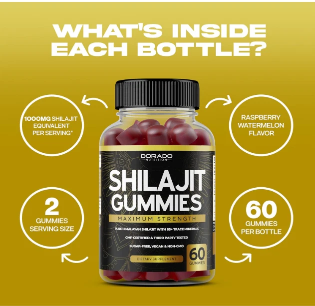 Free eBay listing template designed by dewiso.com Shilajit Gummies Pure 100% Himalayan Organic Shilajit Resin Natural Supplement SHILAJIT GUMMIES - Our Shilajit gummies provide a convenient and delicious way to add this natural supplement to your daily routine, catering to the wellness needs of both men and women. THE BEST SHILAJIT - Unlock the benefits of Pure Shilajit with Dorado Nutrition's high-potency supplement. Each gummy contains 1,000mg of Shilajit extract, providing a powerful and effective dose. DELICIOUS RASPBERRY WATERMELON - Are You Hesitant to Try Gummies Because of Its Unpleasant Acidic Taste? Our Gummies Offer a Perfect Solution with Their Delicious Raspberry Watermelon. You'll Look Forward to Taking These Gummies Every Day, While Still Enjoying All the Benefits of Traditional Shilajit. MAX POTENCY & VALUE - Our Gummies Pack a Punch with 1,000mg Extract Equivalent per Serving, Making Them the Most Potent and Effective on the Market. With 60 Servings per Bottle, You'll Get Maximum Value with Every Purchase! NEVER COMPROMISE ON QUALITY - We Take Quality Seriously, Which Is Why Our Gummies are made with only the finest ingredients. We Vigorously Lab Test for Purity and Potency to Ensure You're Getting the Best Product on the Market - That's the Dorado Nutrition Standard!