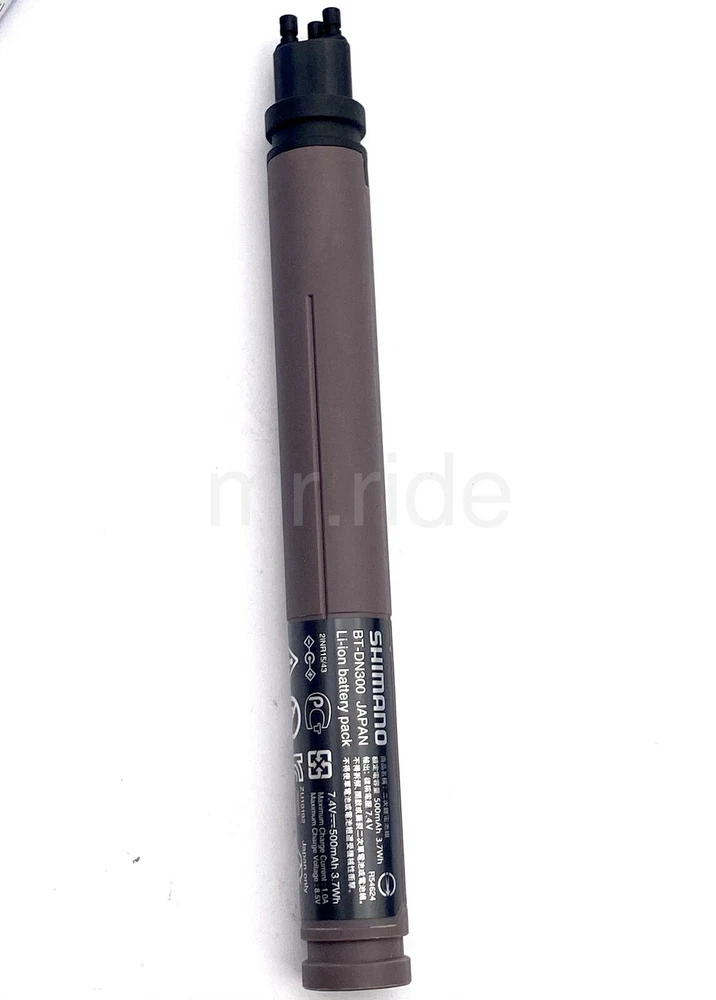 Brand: Shimano Model: BT-DN300 Series: ULTEGRA R8100 Series Average Weight: 52g Type: Build-In Battery Rated capacity (Ah): 0.5 Rated capacity (Wh) : 3.7 Rated voltage (V): 7.4 Color: same as the photo Q'ty: 1 PC BT-DN300 - Compatible with thinner next generation electric wire SD300 and systems after series R9200/R8100/R7100 ->R9270/R9250/R8170/R8150/ST-R7170/FD-R7150/RD-R7150 - 3 SD300 ports - Shared fixing method with BT-DN110 Brand New comes with Original Packaging Made in Japan The new DN300 battery features the same waterproof design that Di2 users have loved for generations. Now with 3 ports, it delivers stable power to Shimano's 12-speed road derailleurs and shifters (if a fully wired option is selected). With the same size as its predecessor, the slim DN300 battery can be housed inside seat posts or frames ensuring a clean aesthetic. Now with 3 ports, the DN300 simplifies wiring to front and rear derailleurs, supplying stable power at all times. The third port is for riders who seek the redundancy of Shimano's 12-speed Di2 wired option.