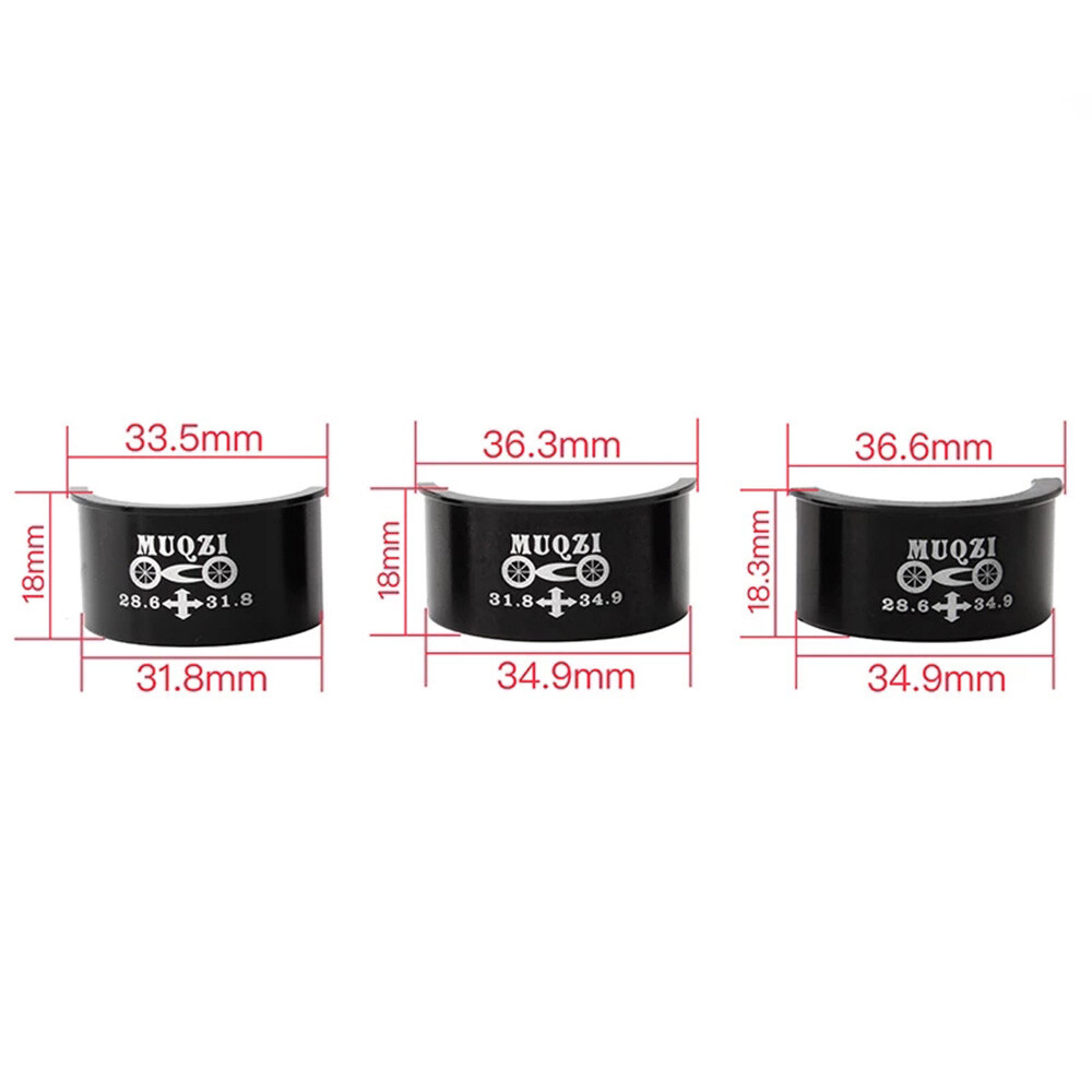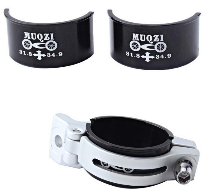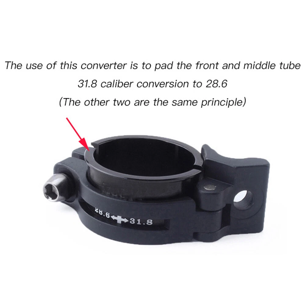Type: Front Derailleur Conversion Shim Material: Aluminum alloy Color: Black Quantity: 2pcs =1 set Package includes: 2pcs Conversion Shim Function: It can convert the tube in the frame of 28.6 to the diameter of 31.8MM, so that you can use the front dial of 31.8 (The other two models have the same effect, but the specifications are different) Specifications: 28.6 conversion 31.8 28.6 conversion 34.9 31.8 conversion 34.9