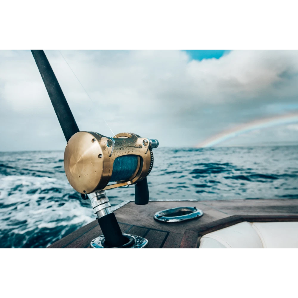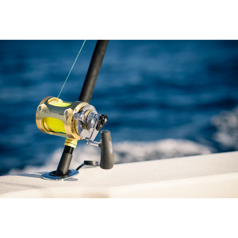 Shimano's Tiagra line up is the absolute pinnacle of game and offshore overhead reels world wide. With a hydrothermal drag and pre-lubricated drag washer impervious to salt water, Tiagra reels remain in perfect control of the biggest, fastest game fish on the planet. The single piece aircraft aluminium frame is machine cut so it won?t distort under pressure of a big fish, the heavy duty stainless steel two speed gears are continuously meshed, and at 89 dB, the ratchet is loud enough to wake the sleepiest crew. \n Product Specifications: Product Code Description Mono Cap. Braid Cap. Gear Ratio Bearings Drag Power Weight TI16 Tiagra 16 8kg – 860m 50lb – 1210yds 3.9:1, 1.7:1 (91/41cm) 6 13kg 1077g TI20A Tiagra 20A 9kg – 631m 50lb – 1225yds 3.9:1, 1.7:1 (104/46cm) 4 16kg 1409g TI30A Tiagra 30A 14kg – 640m 50lb – 1085yds 3.9:1, 1.7:1 (104/46cm) 4 15kg 1486g TI30WLRSA Tiagra 30WLRSA 24kg – 500m 65lb – 1435yds 3.9:1, 1.7:1 (104/46cm) 4 15kg 1576g TI50A Tiagra 50A 24kg – 500m 80lb – 1135yds 3.1:1, 1.3:1 (94/38cm) 4 20kg 2364g TI50WA Tiagra 50WA 24kg – 750m 80lb – 1575yds 3.1:1, 1.3:1 (94/38cm) 4 20kg 2447g TI50WLRSA Tiagra 50WLRSA 37kg – 480m 80lb – 1575yds 3.1:1, 1.3:1 (94/38cm) 4 20kg 2447g TI80WA Tiagra 80WA 37kg – 820m 100lb – 2445yds 2.5:1, 1.3:1 (94/48cm) 4 24kg 3266g TI130A Tiagra 130A 60kg – 900m 150lb – 3315yds 2.2:1, 1.1:1 (99/56cm) 6 45kg 4936g