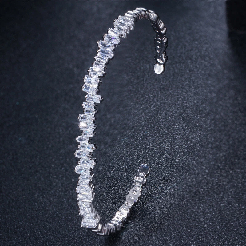 Shiny Baguette Zircon Crystal Open Cuff Silver Plated Adjustable Bangle Bracelet There’s an old saying that: Jewelry is woman’s best friend. And one appropriate luxury jewelry helps to spice up your charm and beauty. And here’s the reason why you choose us: ★ We adopts high-grade Cubic Zirconia, which displays pure and fascinating color; ★ All our items are Elaborate, Gold Plated (white gold plated/yellow gold plated/black gold plated), by which the texture is smooth and with fancy look, and will be appropriate for so many occasions; ★ Our items are with Exquisite Design, which shows your excellent taste, and could catch people’s attention easily. ★ Ideal gift for mother, wife, girlfriend, daughters, brides, bridesmaids, ect. Specification Type: Bangle & Bracelet Stone Material: Cubic Zirconia Base Metal Material: Brass Metal Material: Silver Plated, Rose Gold Plated Shape: Open Cuff Color: White Suitable Occasion: Daily, Holidays, Party, Engagement, Wedding, Anniversary, Valentine’s Day, Carnival, Performance, ect. Package Includes 1 Piece of CZ Bangle Bracelet Please note: *Please bear in mind that there might be 1~2cm difference due to manual measurement. *Our digital images are as accurate as possible. However, different monitors may cause colors to vary slightly. *We offer after-sale service, if there is any item problem, please feel free to contact us via eBay message first, your kind understanding is much appreciated. About Us Payment Shipping Returns Contact us About Us Topjewel33 is a newly-established online store which dedicates to provide excellent luxury jewelry products, such as earrings, rings, necklaces, bracelets, brooches, hair accessories, and high grade jewelry sets. We target worldwide market, and we strive for offering you unbeatable low price and satisfied customer service. Payment We accept PayPal payment only. Payment must be received within 7 days from the date of purchase. Shipping We do hope all our customers could receive the order asap, so normally, the order will be sent out within 2 working days. And as the delivery is handled by the third party, sorry that we could not guarantee which date you could receive the package. And sometimes the delivery might be a little bit delay, especially in high volume or holiday seasons. However, please don’t worry and feel free to contact us via eBay message, and we will do our best to help. And we sincerely apologize for any inconvenience may cause. Sometimes custom tax might be required, and we are afraid that it will be covered by the buyers, thank you for kind understanding. Returns We provide 30 days money back return policy. And if you have any problem with the item, please make sure the item is in the original package and feel free to contact us via eBay message first, thank you for kind understanding and cooperation. Contact us We offer customer service, if you have any problem with the item before/during/after the purchase, please feel free to contact us via eBay message, and we will get back to you asap. Thank you for your kind patience.