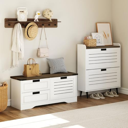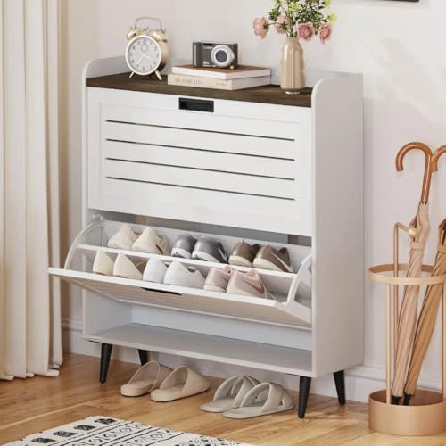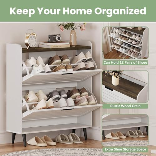 Return Policy Fast Delivery Trusted seller Shoe Cabinet with 2 Flip Drawers, Wooden Shoe Storage for Entryway, Modern Narrow Shoes Rack Organizer with Metal Legs for Hallway (Walnut Brown+White Oak) Product Description [Multi-Layer Storage Space]: This shoe storage cabinet designed with 2 flip drawers, which increase the storage capacity while keeping the room organized and neat. The adjustable and removable shelves of drawers allow you to store shoes of various sizes easily. T is a fence on the top, ideal for placing plants, small items and keys, without worrying about falling [Elegant & Rustic Design]: The innovative contrasting color design makes this entryway shoe organizer look distinctive. The combination of beautiful wood grain and clean lines gives this wooden shoe rack an elegant look, while the unique decorative door panel adds a touch of sophistication to it. Perfect for entryway, hallway, living room, etc [Dimension & Long-lasting Material]: The dimension is 9.37"D x 31.5"W x 36.22"H. This narrow shoe cabinet is crafted from MDF wood and metal legs, pre-installed door handles are convenient and efficient, each component is finely size to ensure the stability and long-term use once assembled. We use FSC-certified wood to foster sustainability and encourage responsible forest management practices [Stable Structural Design]: This hidden shoes rack cabinet with drawer includes tip-over device, which can be placed against the wall without collapsing. The metal legs at the bottom provide strong support while adding extra storage space, allowing you to put some slippers [Easy to Assemble]: This entry way shoe storage organizer takes around 40 minutes to assemble. We provide quite clear instructions along with all the necessary tools Shipping Returns Payment Shipping Shipping is FREE to all addresses other than APO/PO boxes in the lower 48 states. All our stock ships from US-based warehouses. Shipped via USPS or UPS (depending on location and package weight) Unless stated otherwise, all orders will ship within 24-72 hours of your payment being processed. Check our feedback to see the great reviews of FAST shipping we offer. Returns Seller does not accept returns Payment We currently accept payment via eBay managed payments only. Once payment is cleared, we will dispatch your shipment within 1-3 business days. Please refer to the "Shipping" tab for more information regarding shipping speed to your destination.