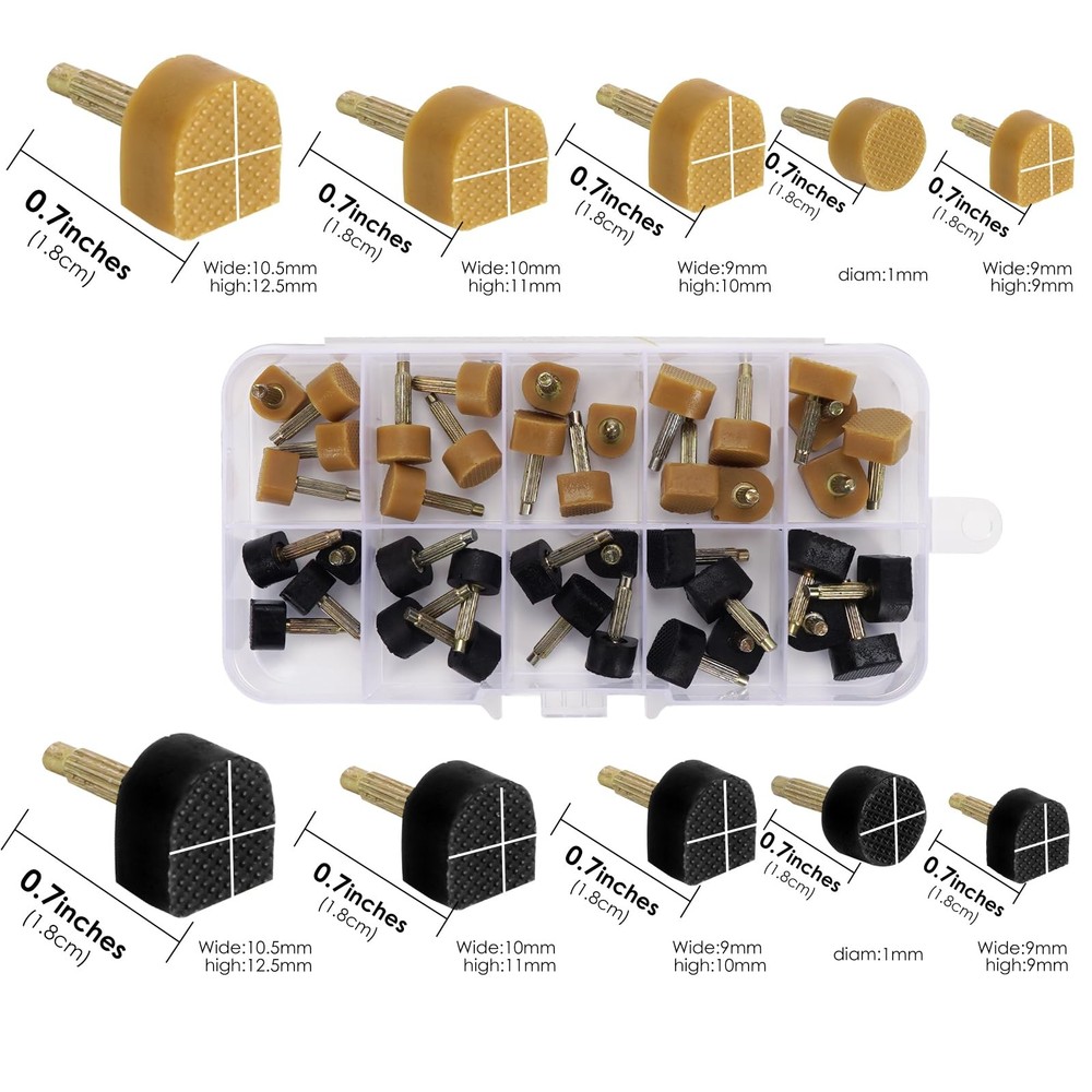 Package content: 20 pairs High Heel Tips + 1 pc Heel Caps Remove Plier + Tin scraper Dimensions: U-shaped: 9*9 mm, 9*10 mm, 10*11 mm, 10.5*12.5 mm, round: 10 mm Feature: - Tin scraper Tin helps remove high heel parts. - Extending the service life of high-heeled shoes and preventing them from being discarded after being damaged. - Suitable for most high heels. Note: - Heel repair set only, others not include. - Use pliers to pull out the old shoe nails, when pulling out, do not shake it from side to side as this will damage the heel. Just pry it up and down and pull it out, then align the new shoe nails with the holes and knock them in. High-heeled shoe parts are made of TPU and strong iron materials, which are durable and wear-resistant. High heel caps are durable, wear-resistant, comfortable, reduce noise, and increase stability and safety when walking. Use comes with a nail pulling pliers to put out the old heel studs, then put the new one into the heel tips hole and knock-in. High heel caps extending the service life of high-heeled shoes and preventing them from being discarded after being damaged. There are a total of 20 pairs in the storage box, 2 colors, 5 sizes each, (U-shaped: 9*9 mm, 9*10 mm, 10*11 mm, 10.5*12.5 mm, round: 10 mm)