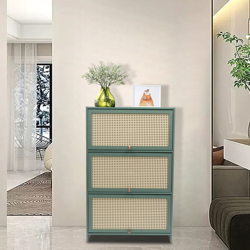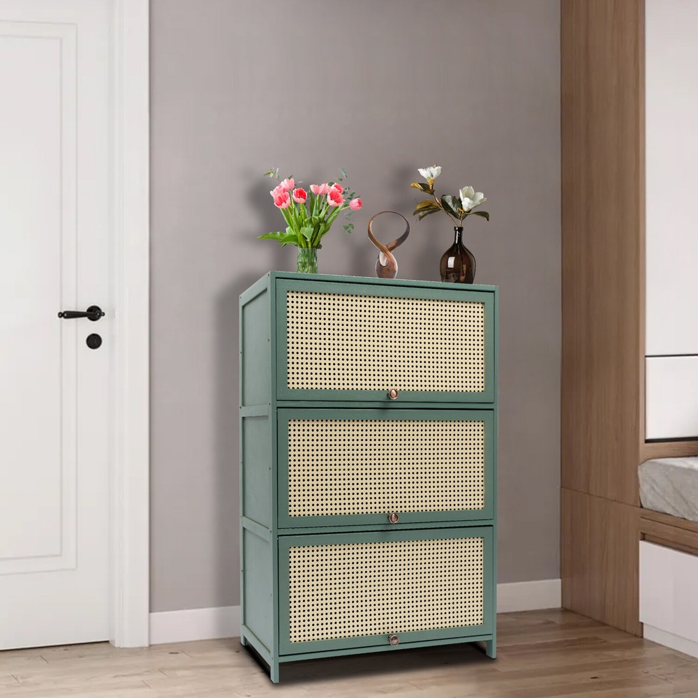 Shoe Storage Cabinet Bamboo Shoe Floor Storage Organizer Rack Shoes Organizer US Beschreibung Description In our daily lives, a neat and organized space can make us feel relaxed and happy. The feeling of coming home starts from entering the door and changing shoes. Choose the shoe cabinet that you like to store your shoes. With its large capacity and elegant appearance, this item makes you feel warm, giving you a sense of pleasure and comfort from the moment you walk in the door. Key Features Last and Durable: This cabinet is mainly made of high-quality bamboo and composite board with a painting process, which makes this item environmentally friendly, and sturdy, so it can provide good performance for a long time. Large Capacity: 6 compartments in the middle and a wide top and bottom space allow you to store about 30 pairs of shoes and other items in an orderly manner, thus enjoying a cleaner environment. Neat Lifestyle: This shoe cabinet cleverly integrates shoe storage into life, placing it at the doorway to put away messy shoes, making it pleasing to the eyes as soon as you open the door, bringing you a neat lifestyle. Elaborate Design: The thoughtful triple folding door and sealed back panel effectively protect against dust, moisture, and odor, bringing total protection to shoes, while the breathable door panel ensures air circulation inside each tier of the product. In addition, the folding door design reduces the footprint of the door, making it suitable even for smaller units. User Friendly: The removable panels allow you to plan freely for heels, stilettos and shoeboxes, etc. Meanwhile, the rectangular structure and high-quality bamboo material make it able to hold approximately 11.02-16.53lbs per tier, making it possible for you to place your belongings with confidence Fancy Appearance: The beautiful green, smooth lines, and simple style make the whole product retro and solemn, which can decorate rooms of different styles. Protective Package: To prevent the product from being damaged and bumped during transportation, we packed it with foam to protect your products to the maximum extent possible. Easy to Clean: The smooth surface, raised bottom and simple structure allow you to easily remove dust and residues with a wet towel. Customer Service: We aim to provide quality products and services. If you have any problems, please feel free to contact us. We will reply and solve the problem for you as soon as possible. Details Plastic Handles: The plastic handles not only make it easier to open and close the product, but also provide a more comfortable touch. Clear Texture: The clear texture on the surface can restore the most realistic touch and give you a better feeling of use. Application It can be placed in the living room, kitchen, entrance, and bedroom to store toiletries, decorative items, spices, small household appliances, books, various shoes, bags, umbrellas, small potted plants, keys, scarves, photos, toys, etc. Specification Material: Bamboo, Plastic Vine, Composite Board, Plastic Color: Green Style: Modern Shape: Rectangular Process: Painting Intended and Use: Residential Use Mounting Type: Freestanding Assembly Required: Yes Number of Pieces: 1 Number of Tiers: 7 Number of Doors: 3 Each Compartment Load Capacity: About 5-7.5kg/11.02-16.53lbs Product Size: 70*32*106cm/27.5*12.6*41.7in Each Compartment Height: 15cm/5.9in Each Door Height: 31cm/12.2in Package Included 1* Shoe Cabinet 1* Glove 3*Plastic Handles All Accessories for Installation Notes 1.We recommend using it indoors, trying to avoid drastic changes in humidity and staying away from the air conditioning vents as much as possible. 2.Please do not collide, knock or rub with hard objects to avoid scratching or damaging the gloss of the product surface. 3.Bamboo products are made of natural materials, which will inevitably lead to different textures, knots, halos, gaps, and spots, but they will not affect beauty and use. 4.Please do not use corrosive detergent or hard objects for cleaning. It is recommended to use a soft cloth for wiping. 5.Bamboo products should not be exposed to the sun, or in a dark, and humid place for a long time to avoid cracking, deformation, and mildew. 6.Please note that the number of shoes that can be stored will vary depending on the size and height of the shoes. 7.Please allow the slight color difference caused by the shooting light and 1-3cm error due to manual measurement, and make sure you do not mind before ordering. Payment Delivery details Terms of sales About us Contact us Payment We accept ebay payment 。 Fees such as import duties, taxes are not included in the item price or shipping costs. These charges are the buyer's responsibility. Delivery details Shipping: 2-9 working days to: USA Terms of sales We maintain high standards of excellence and strive for hundred percent customer satisfaction. Feedback is very important to us. We hope that you contact us immediately before you give neutral or negative feedback, so that we can address your concerns. It is impossible to address issues if we do not know about them! About us Your satis faction is our ultimate goal. We work hard to earn your trust and future business. Our certified technicians have tested each item before shipping. The unit comes with 1 year limited warranty on all manufacturing defects. a) If you receive a defective item, you may return it or ask for a discount. Please contact us within 14 days after you receive the package. b) What you returned must be intact and in its original packaging as re? u. Customer is responsible for shipping costs of the returned item. c) We will cover the cost of shipping back t with the shipping rate indicated in the registration page. We will send you a new unit or refund the full payment you paid. Thank you. Contact us Business Hour Business Hour: Monday To Friday: 8:30 AM to 5:00 PM (Beijing China time) Due to time zones, our reply to your questions may not be immediately. But wit