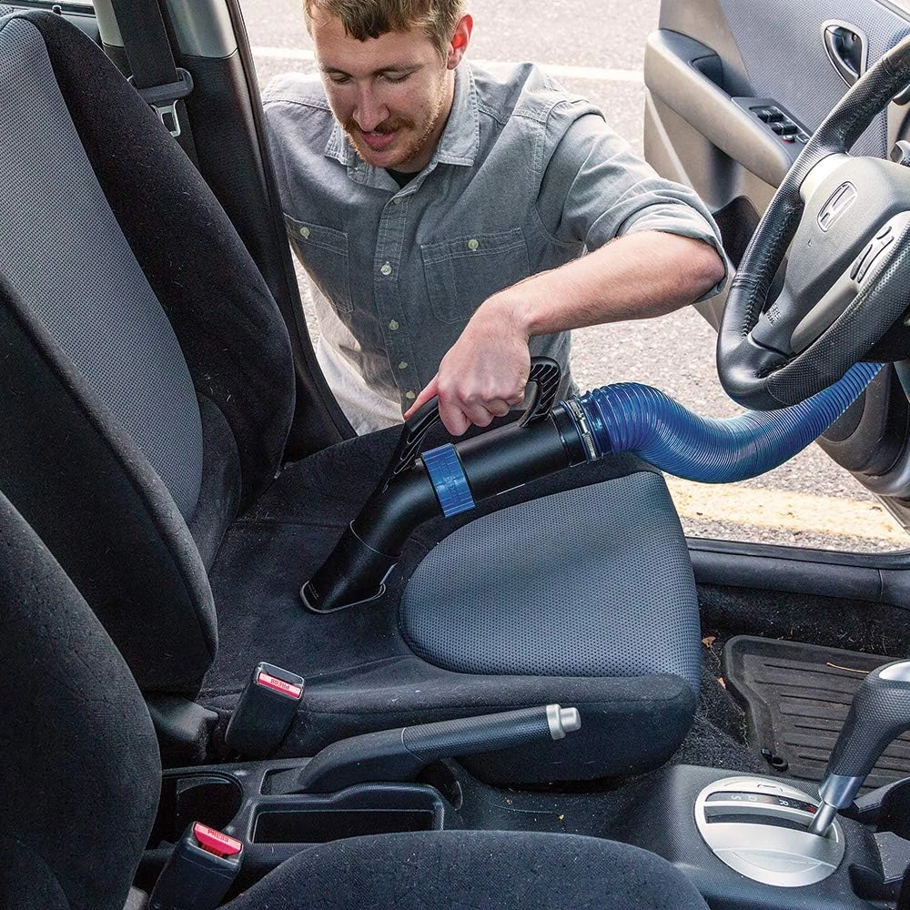 Shop Vac Hose Kit Expandable Blue Shop Vac 2-1/2 Elastic Flexible Polymer Vacuum 2-1/2” Blue Shop Vacuum Hose Extension Kit: This incredibly stretchy 2-1/2'' dust vacuum hose extends up to 12 ft. in length, then collapses back into a compact 2 ft. stack for storage. The dust collector hose weighs 30% less than previous versions and is offered in a blue translucent color. Helps To Prevent Tangling & Tripping: This dust collection hose allows you to reach most areas of your shop, without the hassle of a long, cumbersome hose. As you move closer to your shop vacuum, it retracts to take up excess slack, which helps prevent tangling and tripping. Fits In Standard Shop Vac: With the two included swivel fittings, our dust collection hose can easily connect to your shop vacuum, optional dust right accessories, and many dust ports. Durable Material: The shop vac hose is made of an amazingly elastic, flexible polymer which you can apply for a long time and stretches from approximately 2' to 12' in length. 2.5 "w x 144.0 "w. Weight: 3.24 lb Batteries Required? No Color Blue Material Metal Item Weight 3.24 pounds Batteries Included? No Item Length 12 Feet Outside Diameter 2.5 Inches Is Discontinued By Manufacturer No Product Dimensions 144"L x 2.5"W