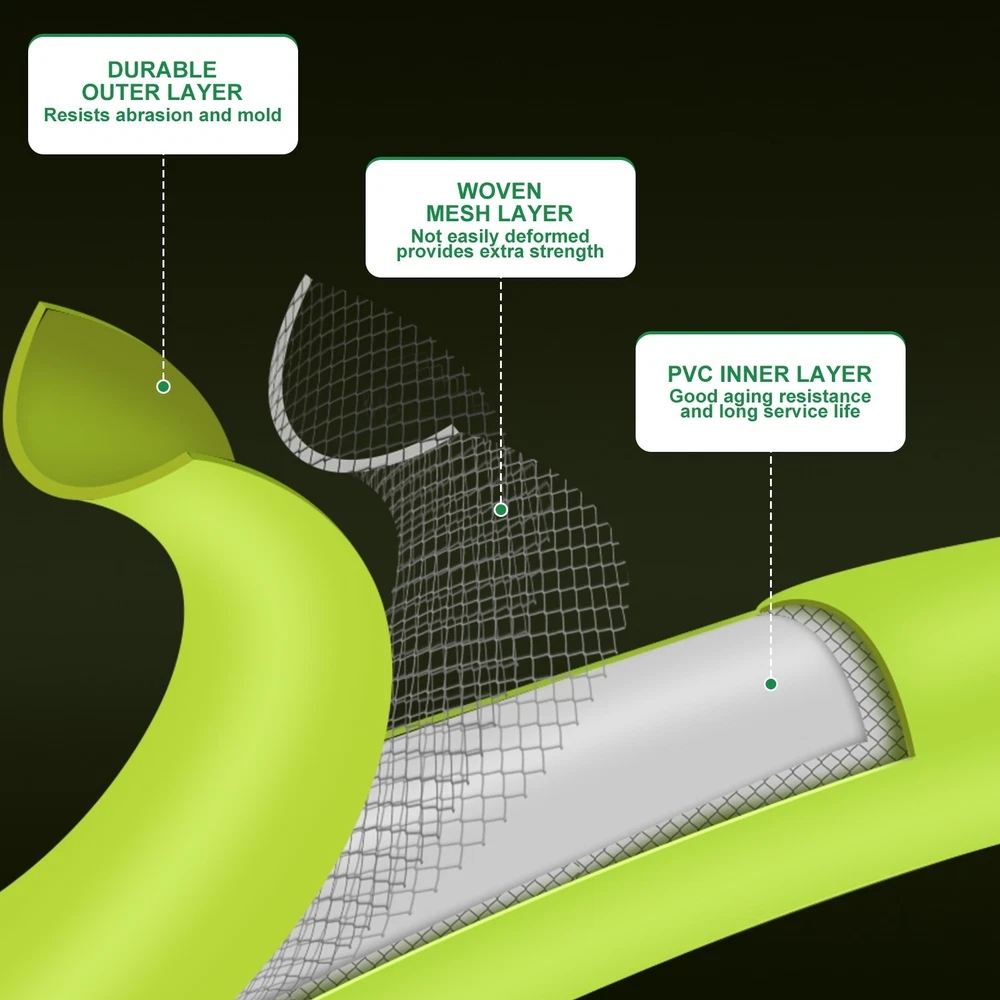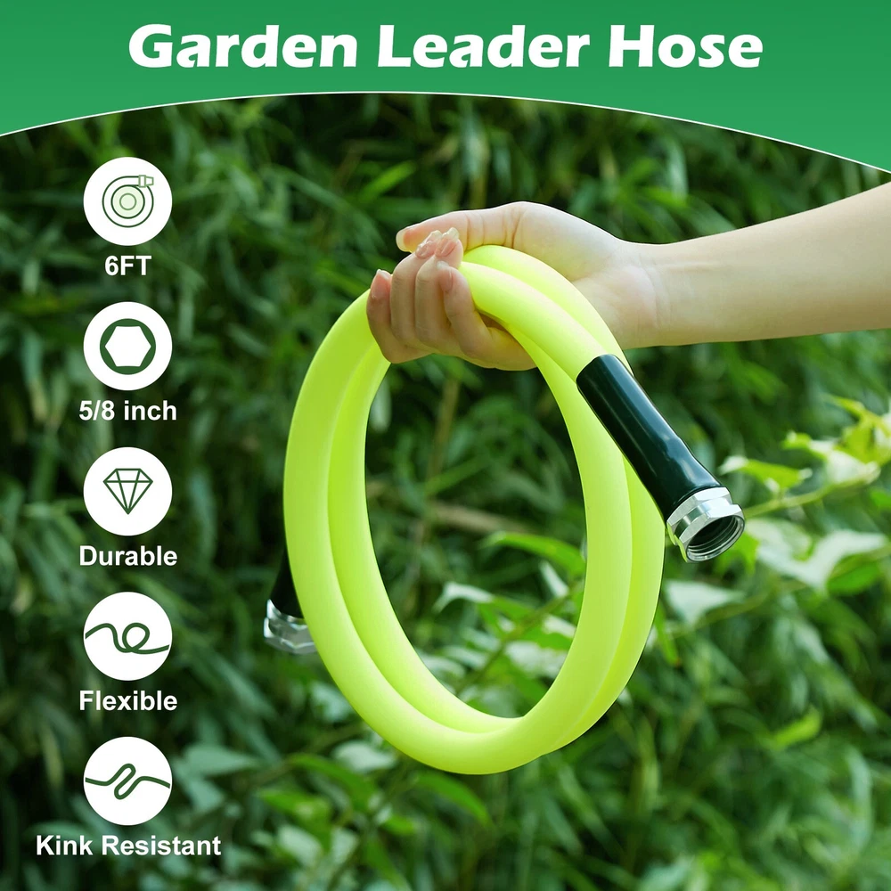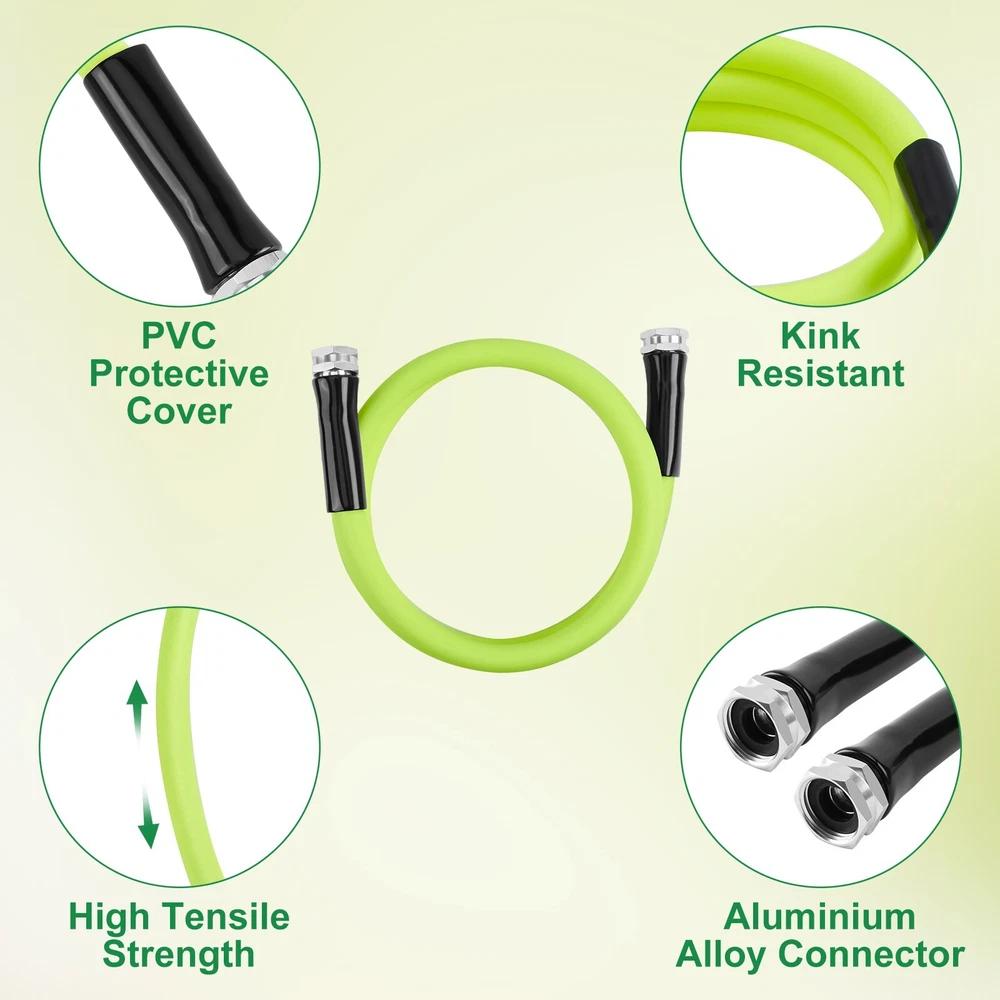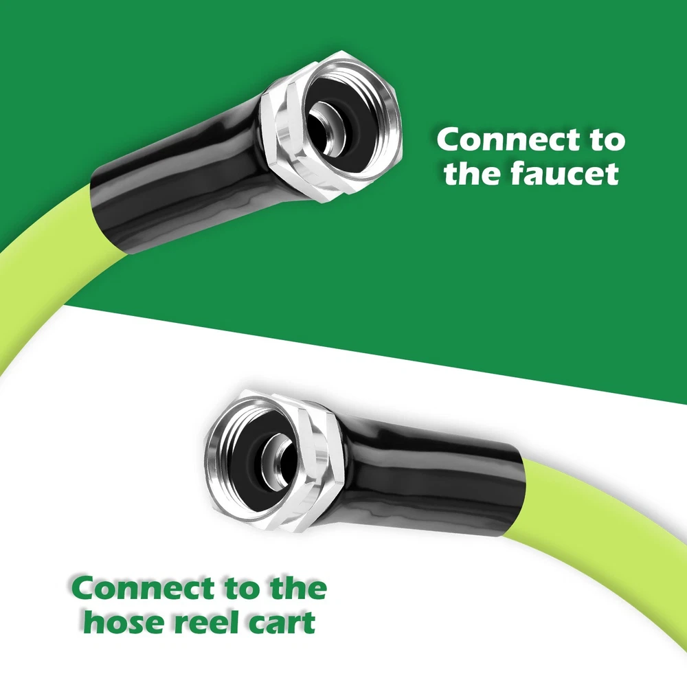 Leader Hose for Garden Hose Reel Specifications Short garden hoses are not lead-free brass and cannot be used for drinking water. Thread: 3/4" female thread on both sides of the connector. Tube: outer diameter: 0.75in; inner diameter: 0.625in. Working Pressure: 150PSI, can withstand up to 350PSI Operating Temperature: -4℉-140℉ 5/8in refers to the inner diameter of the tube WADEO Female to Female Hose 3-layer Combination Our leader hose is made of two layers of quality PVC and one layer of high tensile polyester yarn reinforcement. The double female connectors are made of aluminium alloy. It is higher tensile strength, flexibility, wear and crack resistance. The double female hose connectors are made of solid brass. Lightweight & Flexible Hose The WADEO is lighter than traditional garden hoses making them easier to carry, lift and maneuver around the yard. With its kink-free design and lightweight construction, garden hose ensures hassle-free watering without any tangling or twisting.