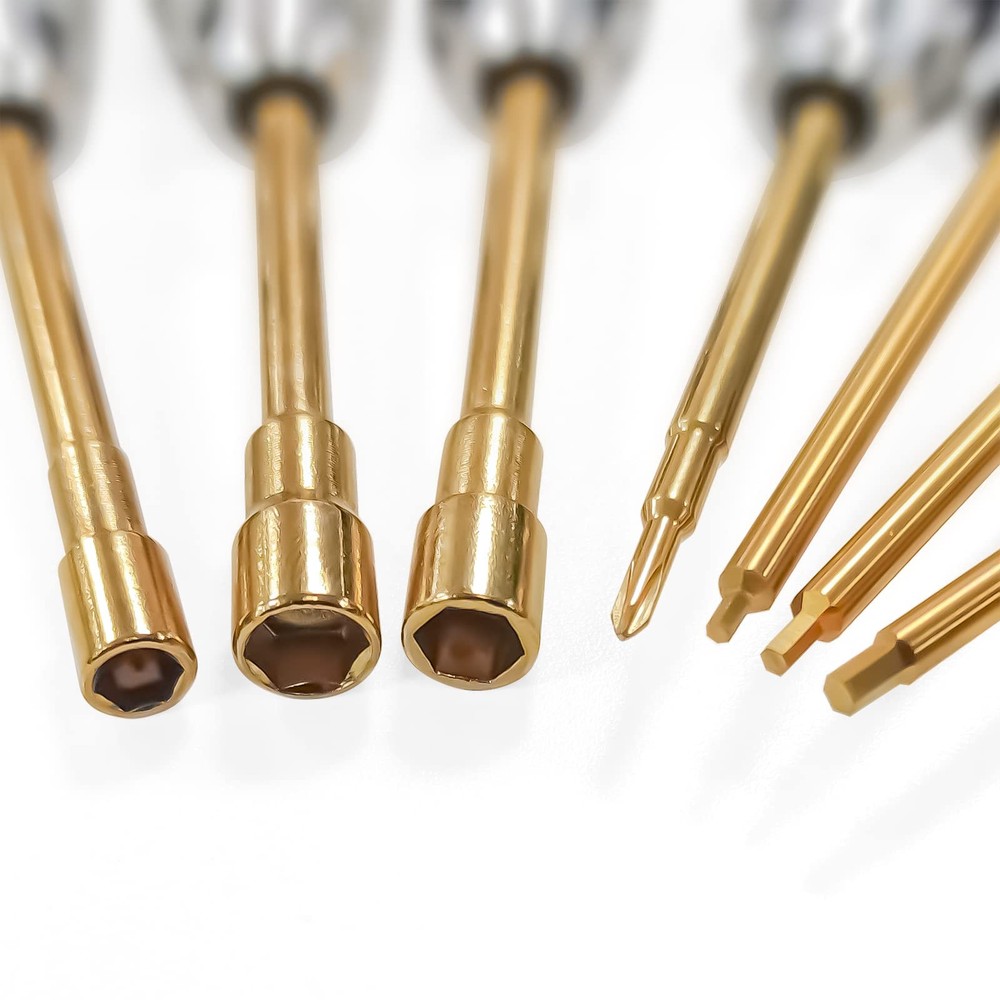 HSS steel tips, precision designed for precision cut and excellent fit. 7pcs separate screwdrivers, no need to change the tips, more convenient to use. Slip-resistant grip aluminum handle, you can still use it properly even when you’re sweating away in the summer sun. This RC car tool kit including 4.0 5.0 5.5 box spanners, 0.05" 1.5mm 2.0mm drill tips and 2.0+ Phillips tips Hex Screwdriver. Specially designed for 1/18 1/24 RC Mini Crawler Car TRX4M Defender Bronco K10 High Trail F150 SCX24 FCX24, maintain and repair your car quickly.