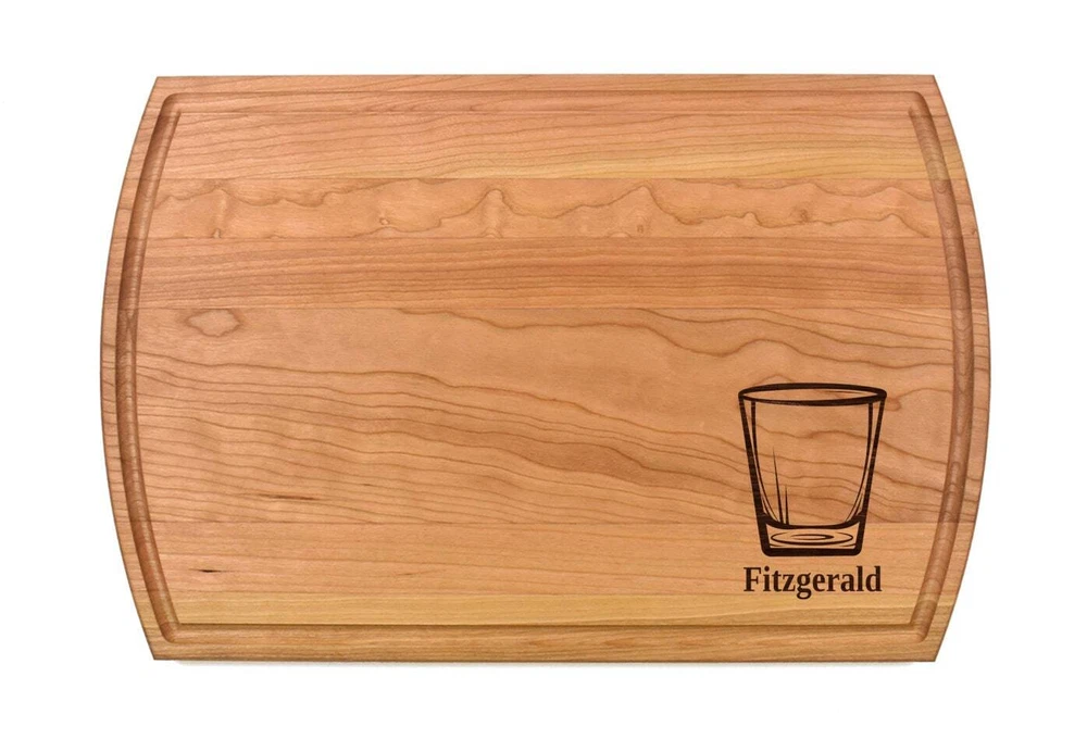 Design: Personalized Shot Glass Cutting Board or Charcuterie Serving Tray All items ship via USPS - please make sure your address is correct :-) Whether used as a charcuterie serving tray for snacks or cutting board, our bamboo, walnut and cherry custom boards are the perfect addition for the home and make the perfect gift for your loved one celebrating a birthday, anniversary, new home, wedding, etc! *** FEATURES *** • SIZES: We have multiple styles and sizes available. To see our current sizes available, click the drop-down menu. The photo slide contains a photo showing each side by side. Please note, the board with the juice groove only has the groove on the front side of the board. • THICKNESS: Bamboo Boards - Approximately 1/2" Thick; Walnut & Cherry Boards - Approximately 3/4” Thick • UNIQUE: Every board is unique with the grain and coloring varying throughout - no board is the same! • CARE INSTRUCTIONS: Hand wash only with warm water. Do not soak. Please apply mineral oil throughout the board’s life. • PERSONALIZATION/CUSTIMIZATION: Do you want the text placed differently on the board? Please don’t hesitate to contact us. All personalization notes can be entered in the personalization box when checking out. • SHIPPING: All cutting boards ship within 2 to 5 business days. • WHOLESALE ORDERS: Please don’t hesitate to contact us for information about wholesale orders. Processing times for larger orders may change. • NOTE: Colors can vary a bit on different monitors and screens. Any props included in photos are not included. Please be sure to double-check your address to make sure it is accurate for USPS delivery. If a package is returned to us due to an invalid address, the buyer is responsible for all additional shipping charges. We appreciate you supporting small business – best wishes! For items ordered with simple edits, we do not send proofs since the layout doesn't change from the example(s). However, in the event there are requests that change the layout from the example(s), we do send proofs for approval before making the product. If you'd like a proof before we make the product, please note so in the personalization box.