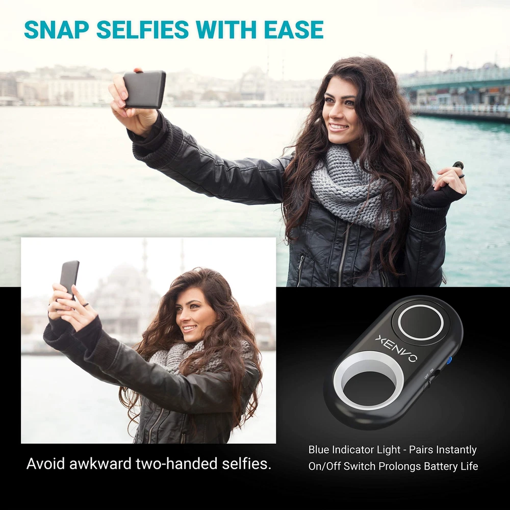 Bluetooth Remote Control Camera Shutter for iPhone, iPad, Samsung Galaxy & Note, Android Smartphones, Cell Phones and Tablets. Wireless Selfie Button Release for Today's Mobile Photographer. CAPTURE STUNNING PHOTOS & VIDEOS REMOTELY WITH EASE - Say goodbye to blurry photos. Eliminate camera shake for razor crisp photos every time. Snap photos and Start/Stop video recording with the click of a button. Compatible with all iPhone, iPad, iPod models (iOS 5.0+) and Android smartphones and tablets (4.3+) including Samsung Galaxy, Note, Google Pixel and more. Not compatible with Windows phones. PAIRS INSTANTLY. NEVER MISS ANOTHER PHOTO MOMENT - Auto-connects to your phone in split-seconds. Blue indicator light lets you know at a glance that shutter is paired and ready for action. Easy access ON/OFF switch makes powering on and off a cinch for those special moments when you only have seconds to capture the perfect shot. RELIABILITY AND CONVENIENCE BUILT TO LAST - Shutterbugs are equipped with advanced American, Ericsson Bluetooth 3.0 technology you can depend on; zero shutter lag, wider smartphone compatibility, and longer battery life guaranteed. Compact, convenient, and portable design clips easily to your bag or keychain for easy access anytime. Experience the ultimate remote control shutter today. 30 FEET RANGE GIVES YOU ROOM TO ROAM - Unchain yourself from your phone. Snap selfies and group photos with friends and family from afar. Position your phone, jump in the shot, and click the Shutterbug from up to 30 feet away. Excellent for nature photography too. Setup your phone and snap photos from a distance without disturbing your subject. IRON-CLAD LIFETIME WARRANTY - When you invest in tech, you want it to work for years to come—not just a few short weeks or months. We stand behind every remote shutter we make. Each Shutterbug comes with a lifetime warranty so you can rest easy knowing that whatever happens, we've got you COVERED.