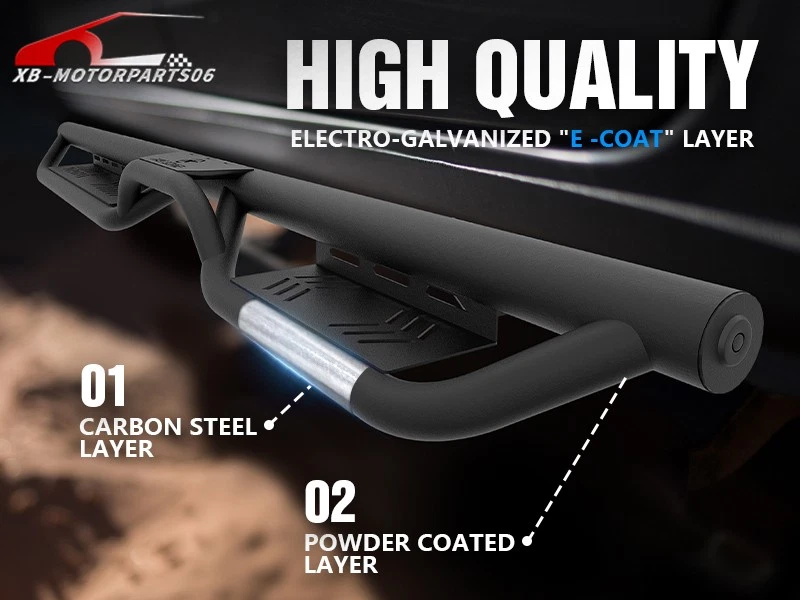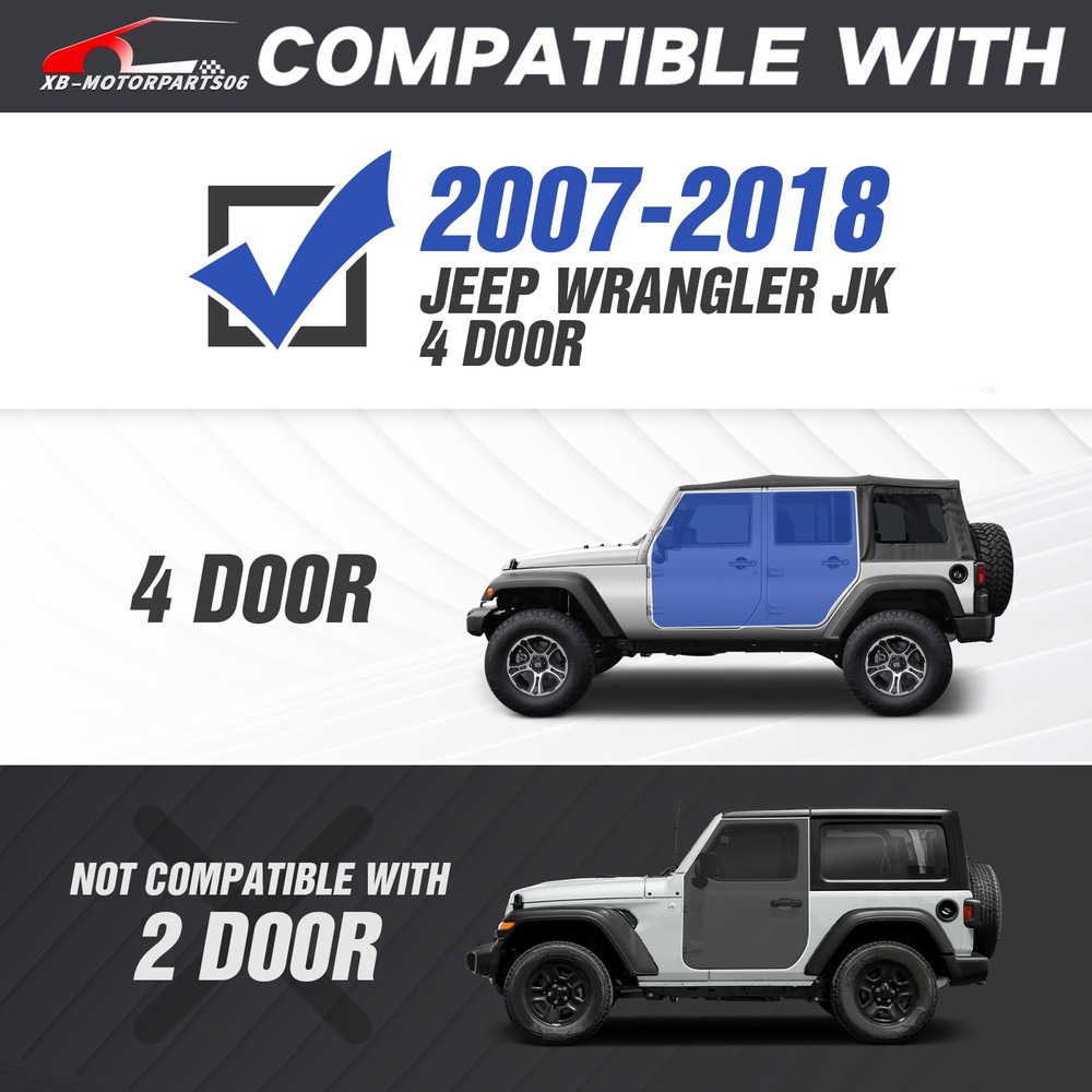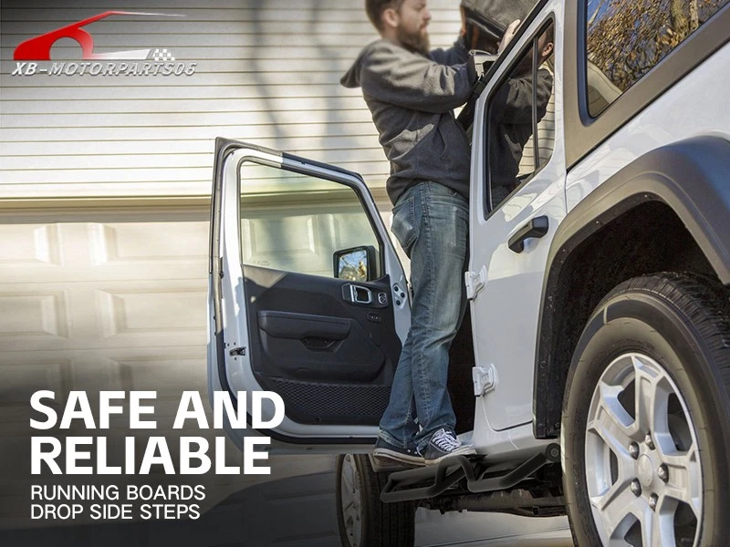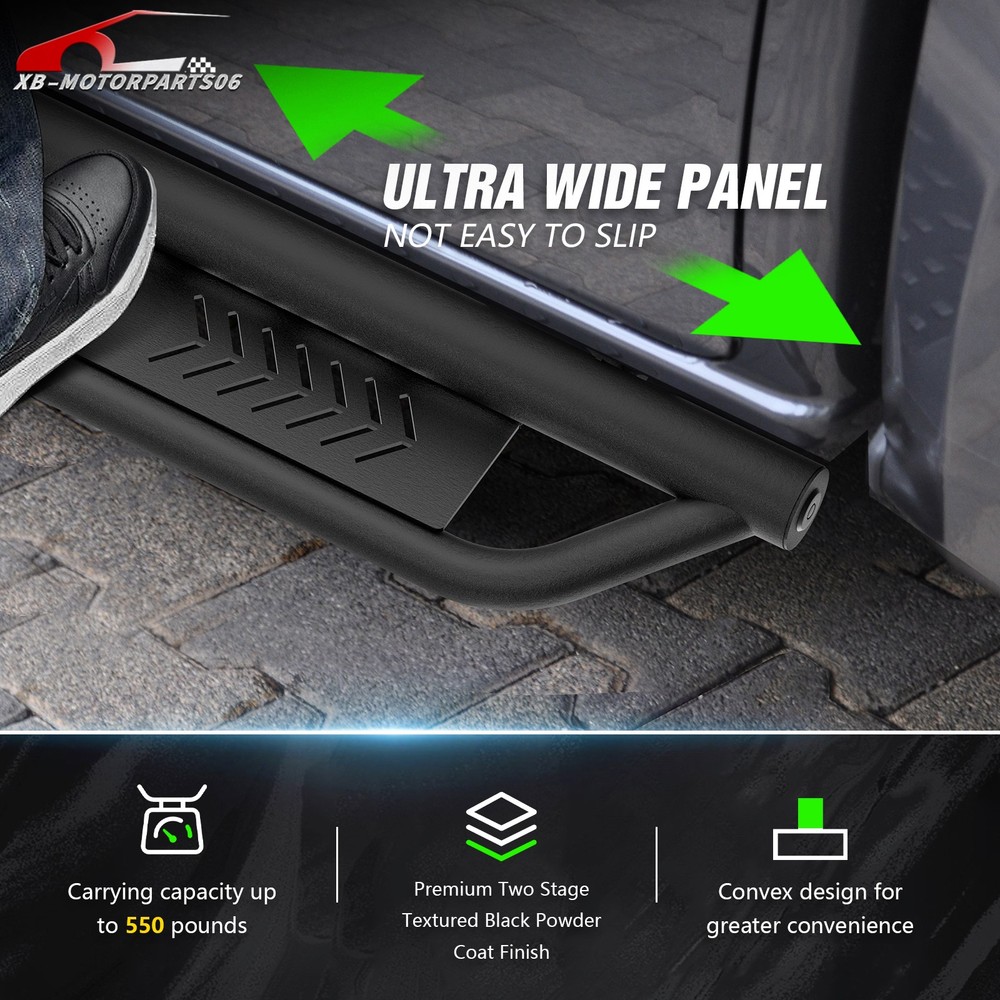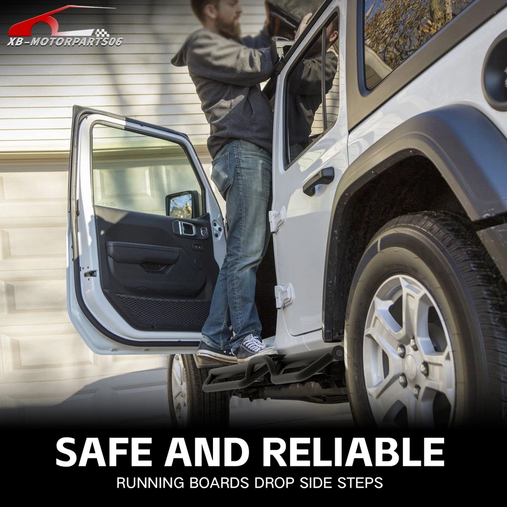 Side Running Boards For 2007-2018 Jeep Wrangler JK JKU Unlimited 4 Doors Bolt-on Suitable Models : Compatible with 2007-2018 Jeep Wrangler JK JKU Unlimited 4 Doors Package Includes : 2 × Running Boards Side Steps, brackets, instructions, and all necessary hardware Product Information : Product Dimensions: 71.30 x 5.60 x 5.30 inches Installation mode: Bolt-On Weight Limit: 550LBS Placement on Vehicle: Left and Right Item Weight: 50.38 Pounds Material: Carbon Steel Color: Black (hand measurements may have an error of 2-3 mm/0.078-0.118 in) Feature: ① The side steps boast a two-tier layout, offering improved convenience for vehicles equipped with lift kits and oversized tires, as well as easier access to the roof ; ② The ultra-thick main tube provides exceptional weight-bearing capacity, ensuring the step resists deformation and enhances vehicle protection; ③ The hollow design of the step area ensures safe and stable footing, prevents water accumulation, and reduces driving resistance; ④ The premium black powder coating offers excellent rust and corrosion resistance. Made from heavy-duty 2mm carbon steel, each side can support up to 550 pounds. Precision laser cutting and stamping techniques ensure a non-slip step surface and improved traction; Warranty Period : 1 year Standard Shipping (FedEx Ground or FedEx Home Delivery) Will usually ship within 3 business days of receiving cleared payment Suitable Models : Compatible with 2007-2018 Jeep Wrangler JK JKU Unlimited 4 Doors Package Includes : 2 × Running Boards Side Steps, brackets, instructions, and all necessary hardware Product Information : Product Dimensions: 71.30 x 5.60 x 5.30 inches Installation mode: Bolt-On Weight Limit: 550LBS Placement on Vehicle: Left and Right Item Weight: 50.38 Pounds Material: Carbon Steel Color: Black (hand measurements may have an error of 2-3 mm/0.078-0.118 in) Feature: ① The side steps boast a two-tier layout, offering improved convenience for vehicles equipped with lift kits and oversized tires, as well as easier access to the roof ; ② The ultra-thick main tube provides exceptional weight-bearing capacity, ensuring the step resists deformation and enhances vehicle protection; ③ The hollow design of the step area ensures safe and stable footing, prevents water accumulation, and reduces driving resistance; ④ The premium black powder coating offers excellent rust and corrosion resistance. Made from heavy-duty 2mm carbon steel, each side can support up to 550 pounds. Precision laser cutting and stamping techniques ensure a non-slip step surface and improved traction; Warranty Period : 1 year