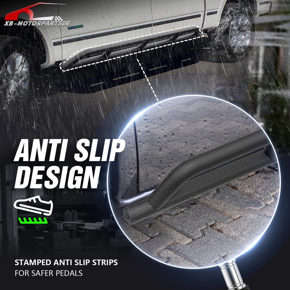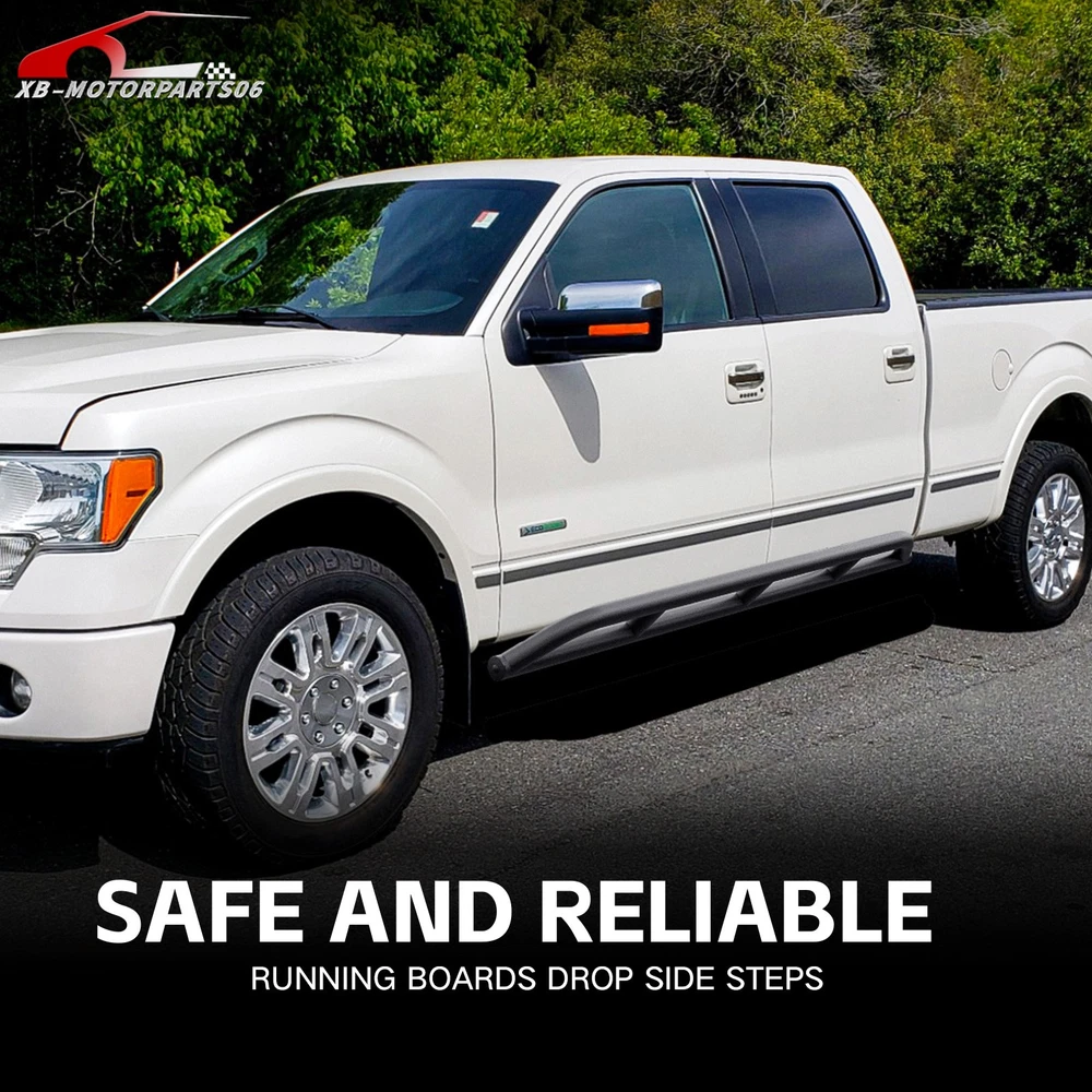 Side Step Running Boards Bolt-on Nerf Bar For 2009-2014 Ford F-150 SuperCrew Cab Suitable Models : Compatible with 2009-2014 Ford F150 F-150 SuperCrew Cab Package Includes : 2 × Running Boards Side Steps, brackets, instructions, and all necessary hardware Product Information : Product Dimensions: 88.11 x 5.80 x 3.40 inches Installation mode: Bolt-On Weight Limit: 550LBS Placement on Vehicle: Left and Right Item Weight: 46.20 Pounds Material: Carbon Steel Color: Black (hand measurements may have an error of 2-3 mm/0.078-0.118 in) Feature: ① Protect the lower cab and chassis of the vehicle from off-road obstacles, or serve as a pivot point for exiting test obstacles; ② The high-quality black powder coating provides outstanding rust and corrosion resistance. Constructed from heavy-duty 2mm carbon steel, each side can withstand a weight of 550 pounds. Precision laser cutting and stamping techniques contribute to a non-slip step surface and enhanced traction; ③ Simple bolt-on installation without the need for drilling or cutting. Precisely aligned mounting holes require only about 20 minutes for complete setup. The package includes 2 side bars, a set of brackets, installation instructions, and all necessary hardware—no additional parts required; Warranty Period : 1 year Standard Shipping (FedEx Ground or FedEx Home Delivery) Will usually ship within 3 business days of receiving cleared payment Suitable Models : Compatible with 2009-2014 Ford F150 F-150 SuperCrew Cab Package Includes : 2 × Running Boards Side Steps, brackets, instructions, and all necessary hardware Product Information : Product Dimensions: 88.11 x 5.80 x 3.40 inches Installation mode: Bolt-On Weight Limit: 550LBS Placement on Vehicle: Left and Right Item Weight: 46.20 Pounds Material: Carbon Steel Color: Black (hand measurements may have an error of 2-3 mm/0.078-0.118 in) Feature: ① Protect the lower cab and chassis of the vehicle from off-road obstacles, or serve as a pivot point for exiting test obstacles; ② The high-quality black powder coating provides outstanding rust and corrosion resistance. Constructed from heavy-duty 2mm carbon steel, each side can withstand a weight of 550 pounds. Precision laser cutting and stamping techniques contribute to a non-slip step surface and enhanced traction; ③ Simple bolt-on installation without the need for drilling or cutting. Precisely aligned mounting holes require only about 20 minutes for complete setup. The package includes 2 side bars, a set of brackets, installation instructions, and all necessary hardware—no additional parts required; Warranty Period : 1 year On Dec 12, 2025 at 15:12:31 PST, seller added the following information: