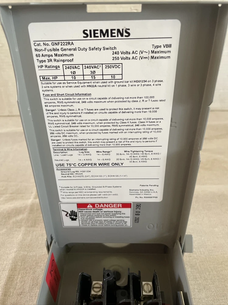 Siemens GNF322RA 60-Amp 3-Pole 240V General Duty Safety Switch Non-Fusible *Flaw
