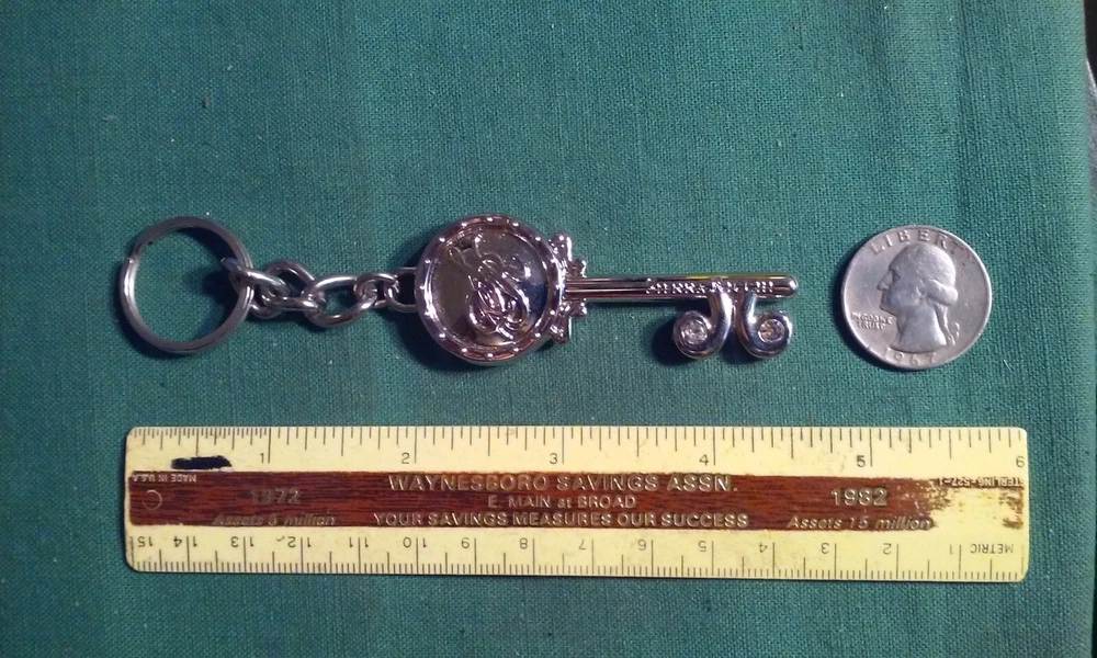 Sienna Ricchi keychain Key shape silver tone key fob pull tag tab Silver-Tone