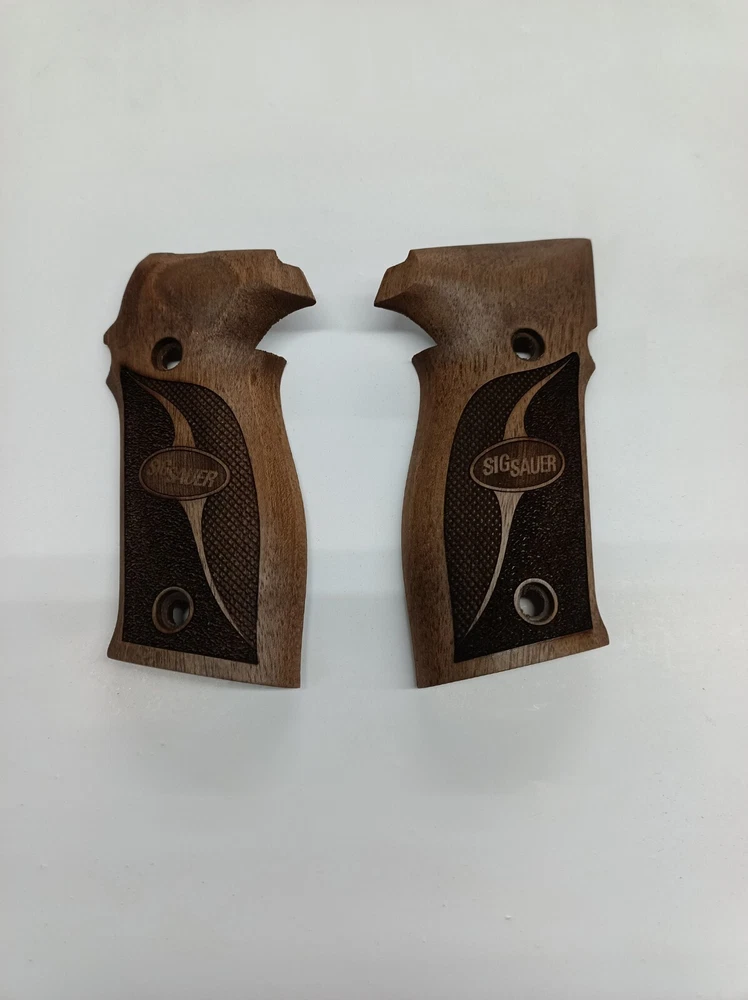 The Sig Sauer P226 Grips are replacement grip panels designed specifically for Sig Sauer handguns. Made of wood in a brown color, these grips are tailored for the 9mm Luger caliber. Ideal for shooters looking to enhance the look and feel of their firearm, these grips bear the Sig Sauer brand name for quality assurance.