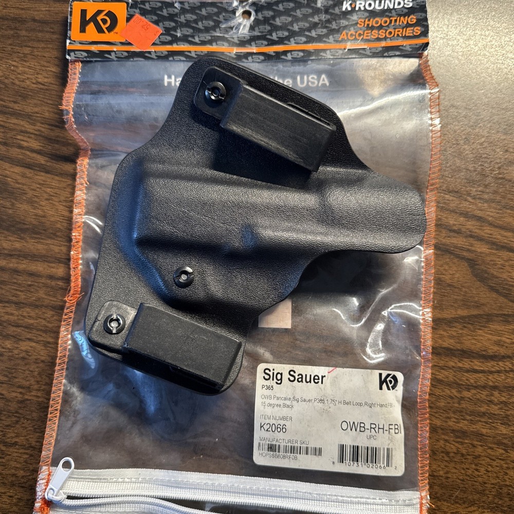 Carry Location: Belt (OWB) MPN: OWB-RH-FBI P365 Gauge/Caliber: 9 mm Luger Country/Region of Manufacture: United States Attachment Type: Belt Color: Black gtin13: 810731020662 Handedness: Right Carry Position: 2 o'Clock, 3 o'Clock, 4 o'Clock, 5 o'Clock Level: Level 1 For Gun Make: SIG SAUER Features: Lightweight, Waterproof, Water Resistant, Weather Resistant Material: Kydex Model: HOPSSB808RF0B Sport/Activity: Shooting For Gun Type: Pistol Type: Tactical Holster UPC: 810731020662 Brand: K Rounds Cant: Forward