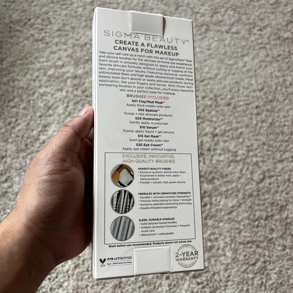 Sigma Skincare Brush Set 6 Brushes For Beautiful Skin Description Sigma Skincare Brush Set 6 Brushes For Beautiful Skin. Item Specifics Brand: Sigma Beauty Skin Type: All Type: Skincare Brush Set Shape: Mixed Size: Standard Color: Silver Material: Synthetic Fiber Features: 2 Year Warranty Unit Quantity: 6 Count Please READ before PURCHASE Luxury products at a fraction of retail price : Sourced from different unique channels like liquidation sales, estate sales, closeout deals, and reputable discount retailers. Always FRESH : All items are carefully selected, never testers or used , and are always fresh and sealed . Batch code verification : Customers can check batch codes to confirm authenticity. Please see all photos carefully! Customer satisfaction guaranteed : If you're unsatisfied, reach out to us first. We will work with you to resolve any issues, including returns or exchanges. Report of fraudulent activity : Any attempt at scamming through fake returns or feedback extortion will be reported to eBay. We take this seriously. Suggestions Sigma Beauty 7 Classic Basic Eye Brush Set For Endless Eye Looks $73.09 Sigma Beauty Most Wanted 5 Favorite Face And Eye Brushes $59.43 Sigma Beauty Deluxe Blending Brush Set $24.79 Sigma Beauty Classic 5 Top Face Brush Set Here Highest Quality Fibers NIB $67.04 SIGMA Beauty 2 In 1 Brush Cup Stay Organized Home Or On The Go $27.75 Sigma Essential Travel Brush Set 7 Brushes With Storage Cup (black) New In Box $59.76 SIGMA Essential Brush Set 12 Classic Face + Eye Brushes (black) Authentic $79.84 Sigma Spa Express Brush Cleaning Mat Black $19.54 Add suggested items to your listings - Check it out on 3Dsellers.com eBay listing template by 3D sellers.com - Try for Free!