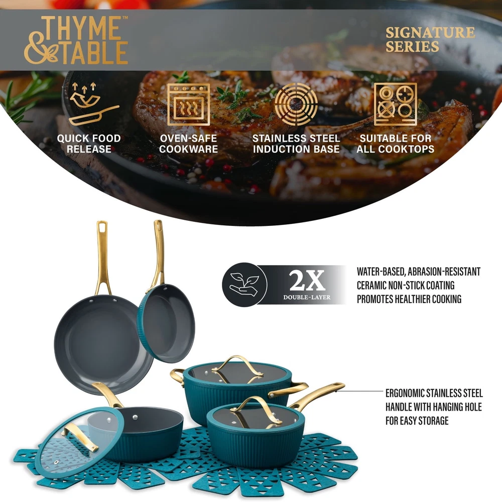 Store Categories Store Categories Other Signature 12-Piece Cookware Set Healthier Cooking Non-Stick - White & Gold Product Description Ultimate Engineering: Each piece is crafted to perfection using heavy gauged aluminum, ensuring exceptional results with every dish. Because of its stainless-steel induction base our cookware is engineered for all cooktops, including gas, electric or induction, and oven safe up to 446° Fahrenheit. Healthier Cooking and Non-Stick: The ultimate feature is its water-based, abrasion-resistant ceramic non-stick coating, promoting healthier cooking and effortless cleanup. Ultimate Handling: Designed for ease and precision, our cookware features ergonomic riveted handles that provide superior grip and balance, ensuring safe and effortless maneuvering in the kitchen. Revolutionize your Kitchen: Capable of handling everything from frying and searing to simmering, braising, and boiling, this comprehensive set is designed to revolutionize your cooking experience. Offering versatility and durability in one stylish package, it elevates your kitchen setup. Enhance your culinary creativity with confidence using the 12-Piece Ceramic Non-Stick Ribbed Cookware Set. Cleaning Care: Dishwasher Safe Payment Policy Shipping Policy Returns Policy Feedback Policy Contact Us Payment Policy All major credit cards are gladly accepted including credit, debit and gift cards, Apple Pay, Google Pay, PayPal, and PayPal Credit. Your order will be processed pending receipt of cleared payment through your payment of choice. Sales tax may be charged de pending on your lo cation. Shipping Policy After payment is received, all items are shipped within 48-72 hours after work (except Saturdays, Sundays, and holidays). During the store's vacation, there are dedicated warehouse staff to arrange shipment, and there will be no delay in shipment. Please rest a ssured to purchase. All products are free of shipping. Returns Policy We accept return within 30 days since you received your package. Please contact us for return or refund. I f you have any questions, please feel free to contact us and we will reply to you within 24 hours. Feedback Policy We greatly appreciate your POSITIVE feedback. Please do NOT leave negative feedback without asking for help. Our aim is to provide Top Level Customer Service. If you have any questions, please feel free to contact us and we will reply to you as soon as we see the message. Thank you very much for your understanding. Contact Us You can contact us by leaving us an txt message on Ebay. We will respond to each txt message within 24 hours every working days(within 36 hours on weekend). We will provide you the best servi ce, sincerely appreciated you would contact us to get a better solutions . Thank you so much to consider time difference, maybe we couldn't not reply to you in a timel manne. Copyright © 2023 Dianxiaomi