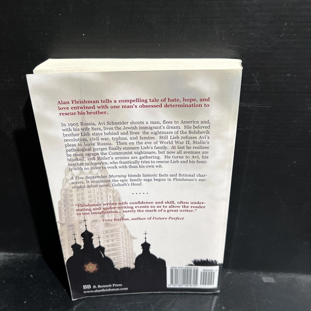 This incredible book titled "A Fine September Morning" by Alan Fleishman is a must-have for any book lover. This trade paperback edition is the first edition of the book and is signed by the author himself. The book is a part of the "Goliath's Head" book series and is published by CreateSpace Independent Publishing Platform. The book is written in English and has 382 pages. It has a length of 9 inches, a width of 6 inches, and a height of 1 inch. The book is set in the historical genre and is set in the United States. It was published in the year 2013 and has an ISBN-10 of 1482021617. This book is a true gem for collectors and enthusiasts alike. The book is shipped via USPS Media Mail in a box 📦