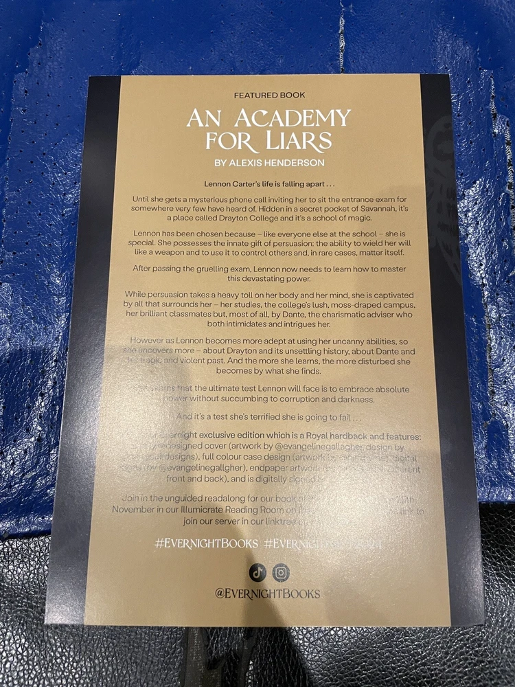 Brand new Digitally Signed Alexis Henderson An Academy of Liars. Illumicrate Evernight Exclusive Edition featuring: Royal format hardback, Fully Redesigned Cover, Full colour case design, Digital edges, E ndpaper artwork . This copy is Digitally Signed so not Hand Signed. In hand in UK. Will try and post same day as ordered. Will be shipped in its bespoke red Evernight box. Fast postage. Check out my feedback and my other items.