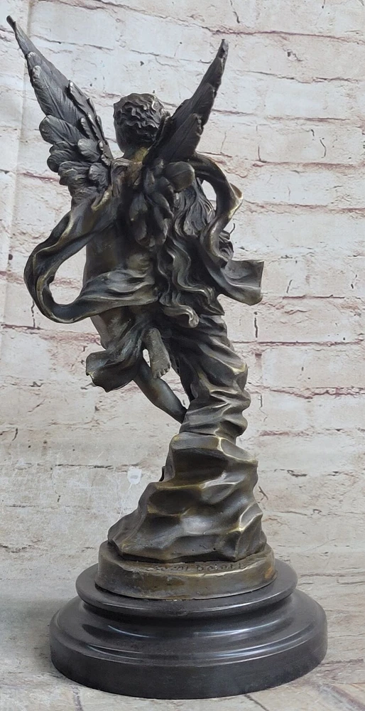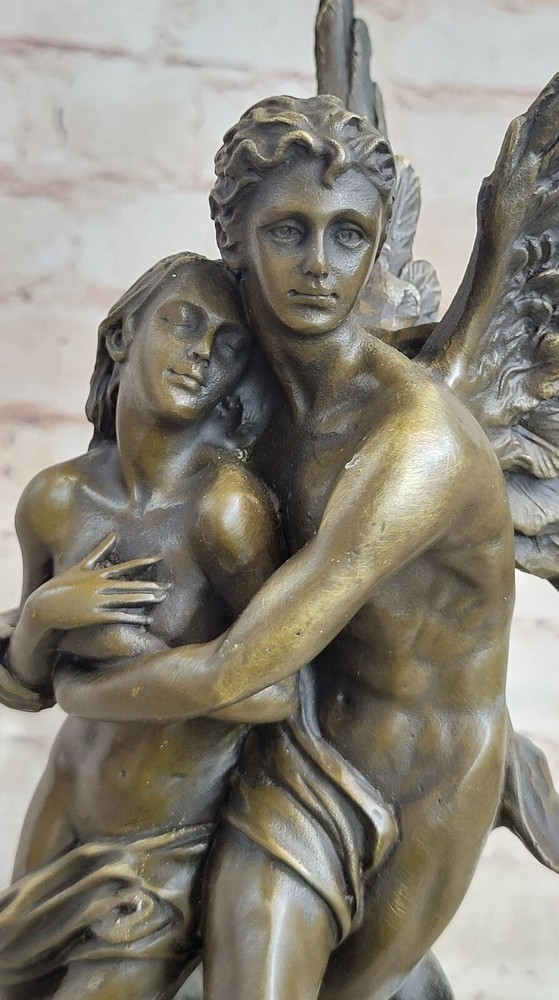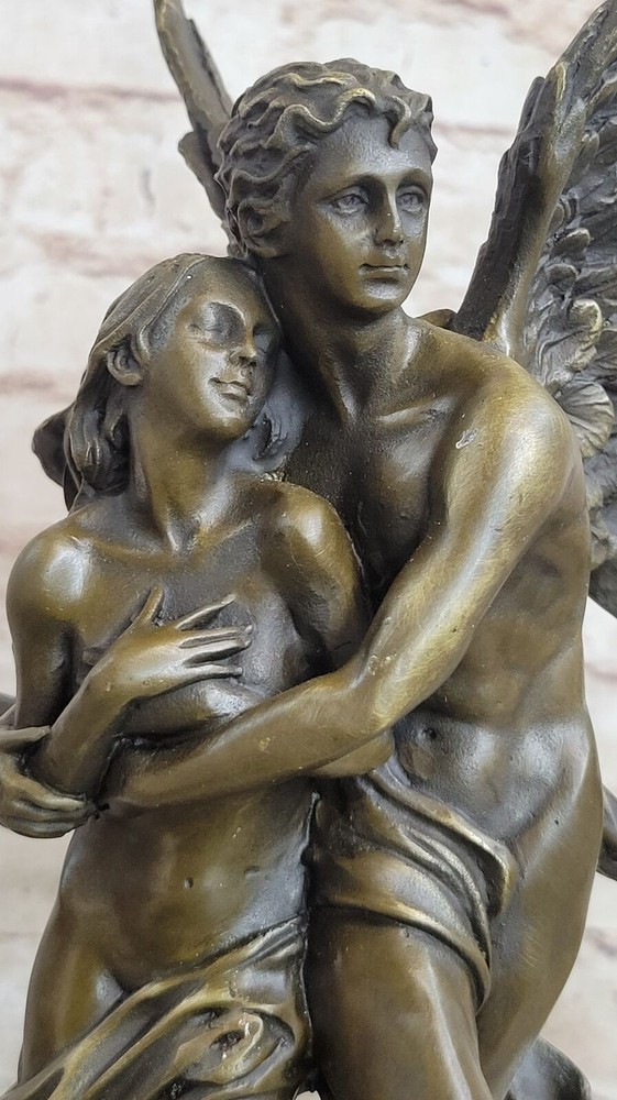 Signed Valentine Cupid Eros Nude Bronze Sculpture Figurine Statue Masterpiece Signed Valentine Cupid Eros Nude Bronze Sculpture Figurine Statue Masterpiece Condition : This sculpture is in a perfect condition. Bronze Dimensions with Marble Base: Height 13" X Width 6" Marble Dimensions: Diameter 6" Height without base:11" Weight:10 LBS Inventory:17Y0774271 This beautiful bronze sculpture depicts the romantic tale of Cupid and Psyche, as they embrace each other at last. Cupid's wings are spread wide as he flies into the sky, holding his beloved in his arms. After years of making others fall in love, Cupid finally has found a love of his own, and he is grateful for it. This stunning sculpture is cast in bronze and sits atop a black marble base. The lost wax method of casting, which has been used for thousands of years, ensures that every detail of this exquisite sculpture is captured. It is signed Jean Debut and is sure to be treasured for years to come. Whether displayed in a business or home, this piece will add grace and beauty to any space. If you're a fan of mythology or simply appreciate the beauty of bronze sculptures, this is a must-have piece for your collection. With its intricate details and romantic theme, this sculpture is sure to capture the hearts of anyone who sees it. Signed Jean Debut Eros and Psyche Greek Mythology Venus Bronze Statue Sculpture YRD-077B Video will open in a new window Using the eBay App? Paste link into a browser window: [isdntekvideo] Shipping Terms : Most of our items are shipped via USPS (United States Postal Service) mail or UPS. Most orders are shipped within 24-48 hours of purchase. Please be aware that not all items are available for USPS shipping due to size and weight. We do ship to Hawaii, Alaska, Canada, Puerto Rico, APO/AE, and U.S. Virgin Islands, however, an additional charge may be required. Please contact us before making any purchases in these areas. For Non-USA customers, you may be responsible for all duty, tax, brokerage fees that may be due upon delivery (shipping costs cover freight charges only). We also ship internationally. Please refer to the "Shipping and Handling" chart for the rates for each area. Payment : We accept just about any form of payment. PayPal, Master Card, Visa or American Express credit cards. Money orders, cashiers checks, and even personal or business checks. For governmental institutions, we will also accept a purchase order. Please understand that for personal or business checks we have to wait for the check to clear (usually 7 days) before shipping. Condition : New Detailed Hand Crafted Hot Cast Bronze Satisfaction Guaranteed. This is Stock Photo, Slight Color Variation!! Listing and template services provided by inkFrog