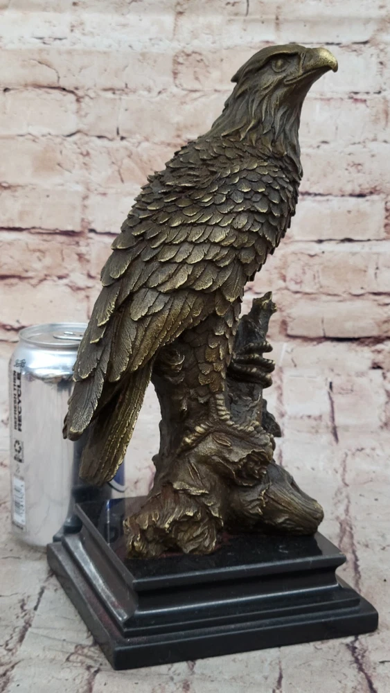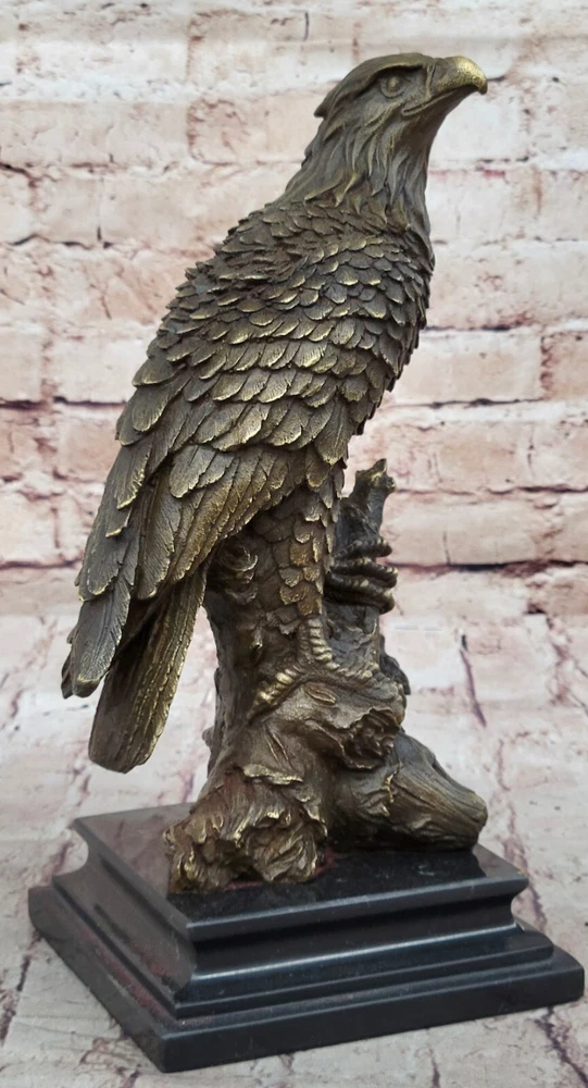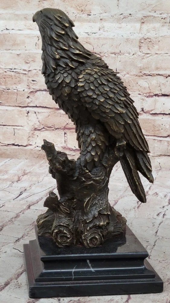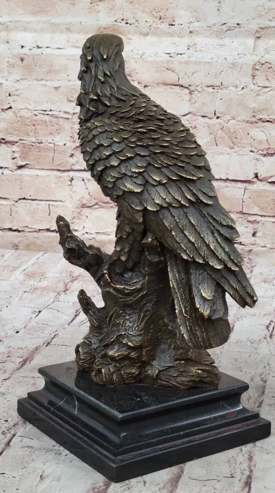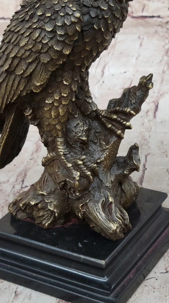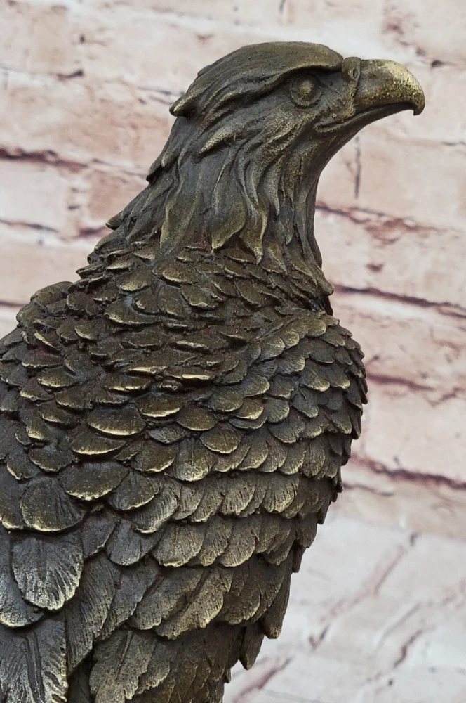 Condition: This sculpture is in perfect condition Bronze Dimensions with Marble Base: Height 12"" X Width 8.5"" Marble Dimensions:5"" X 5"" Height without base:11"" Weight:10 LBS Inventory:54YDWYDW2405745 Majestic PerchBehold the magnificent bronze sculpture of an eagle, gracefully perched upon its nest, ever watchful as its prey draws near. With a serene demeanor, the eagle stands poised, its outstretched talons providing a perfect balance, ready to take flight at the sight of potential food. The meticulously crafted feathers form a harmonious oval shape, while the sharp, pointed beak enhances its majestic presence.Craftsmanship and DetailThis extraordinary sculpture is a 100% bronze cast, created using the time-honored lost-wax casting technique. This method ensures exceptional detail and durability, capturing the intricate nuances of the eagle's form. The rich brown patina finish adds a timeless allure, bringing out the natural beauty of the piece.Artistic ExcellenceElegantly displayed on a marble base, the sculpture is complemented by a meticulously designed bronze plinth. The piece showcases the artistry and skill of the renowned artist Milo, whose signature graces this exceptional work. This sculpture not only represents the awe-inspiring presence of the eagle but also serves as a testament to fine craftsmanship and artistic excellence. Statue Sculpture Eagle Bird Wildlife Art Deco Style Art Nouveau Style Bronze www.bronzhaus.com Video will open in a new window Using the eBay App? Paste link into a browser window: [isdntekvideo]